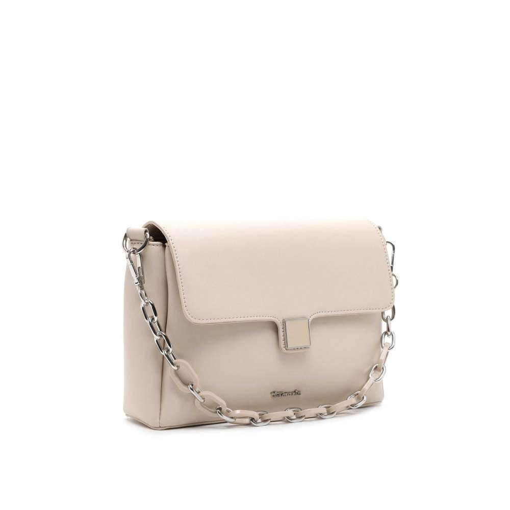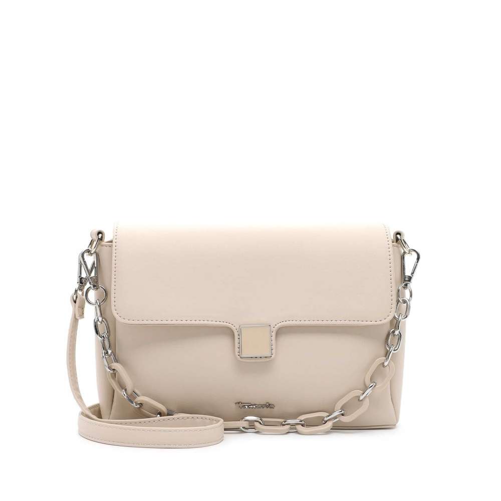 Originální kabelka TAMARIS bude šperkem Vašeho vzhledu, logo značky a ozdobná spona zapínaní zdobí tašku a zdůrazňuje jedinečný vzhled tohoto skvělého modelu. Kabelka se uzavírá klopou s magnetickým klipem, po odklopení se otevře dělený prostor s kapsičkami na zip. Zadní kapsičku můžete použít pro uložení drobností, které chcete mít po ruce. Kabelku můžete nosit použitím řetízkového nebo délkově nastavitelného popruhu, oba jsou odepínatelné. Tato kabelka skvěle doplní každý Váš outfit do práce i do města.