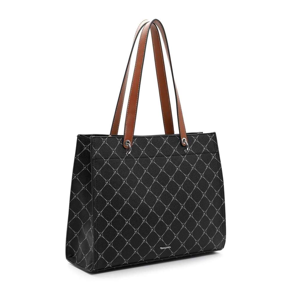 Kabelka Tamaris vhodná pro ženy, které mají rádi prostor a eleganci. Svršek je zdobený potiskem písmena „T“ a logem značky. Kabelka je uzavíratelná zipem, po jehož rozepnutí se otevře hlavní kapsa s nádhernou podšívkou s dalšími kapsičkami na všechny Vaše cennosti. Taška je z pevného materiálu, takže věci, které se nesmí mačkat, můžete bezpečně přenášet. Tento model má dvě ucha pro pohodlné nošení přes rameno. S touto kabelkou doladíte každý outfit do města i do práce. Rozměry: cca V 30 cm x Š 38 cm Vnitřní uspořádání: kabelka není dělená. Délka popruhu pro nošení přes rameno je cca 60 cm.