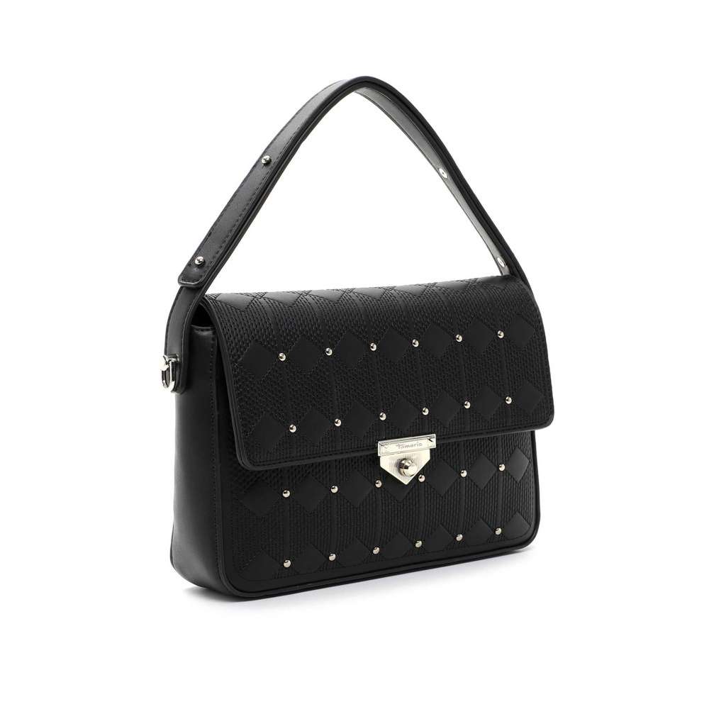 Kabelkou Tamaris okouzlíte své okolí a Vám udělá krásny každý den. Svrškem má originální vzor a zdobné zlatavé aplikace, pomyslnou tečku dodá zapínaní, kde je i vytištěné logo značky. Po otevření klopy Vám kabelka poskytne prostor k uložení věcí a pro lepší přehled jsou tady dvě malé kapsičky. Přes rameno si ji můžete vzít díky kratšímu úchytu, nebo připnout nastavitelný popruh a zvolit si délku Vám vyhovující. Tato kabelka bude ozdobou Vašeho vzhledu a doplní každodenní oblečení jako šperk.