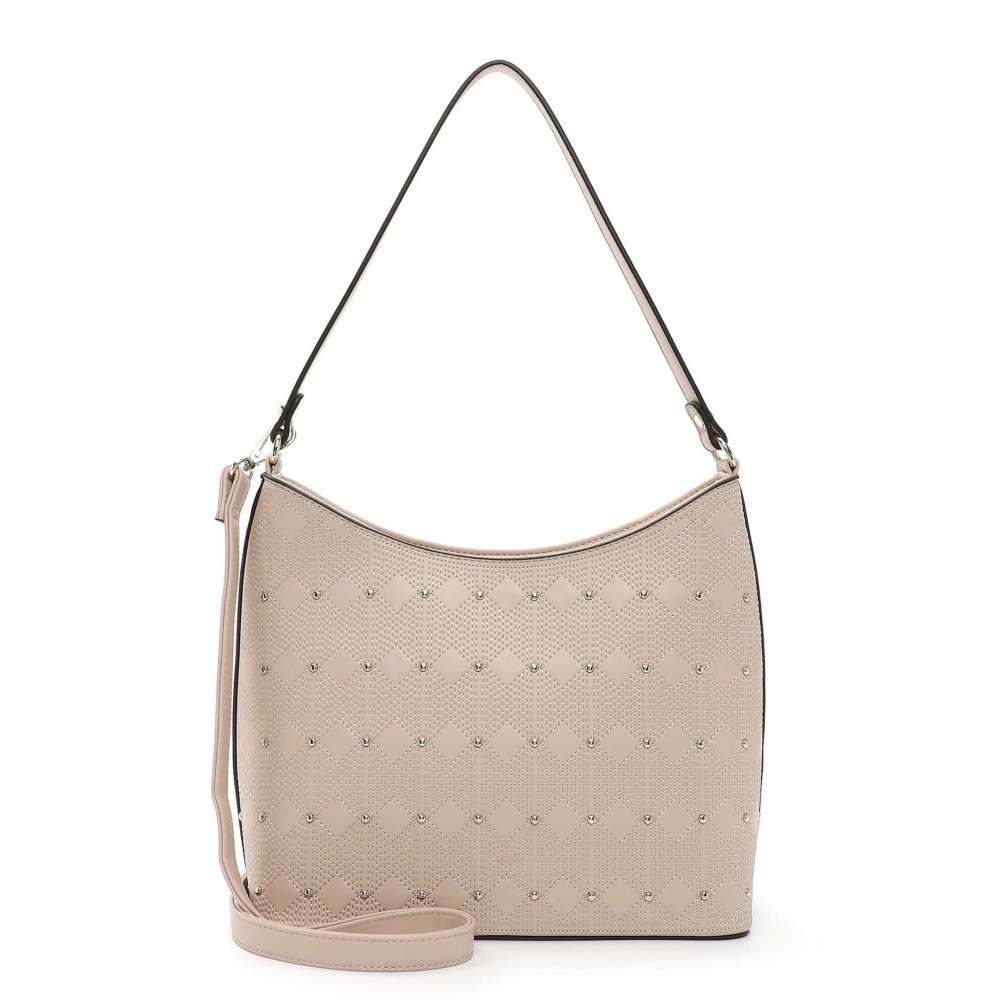 Skvostná kabelka značky Tamaris okouzlí každou z Vás svým propracovaným svrškem a praktickou velikostí pro uložení věcí. Nádherný vzor svršku je doplněný kulatými aplikacemi a vytváří dokonalý vzhled. Zip uzavírá kapsu s dvěma malými kapsičkami pro uložení drobností. Nošení je variabilní díky krátkému úchytu a odepínatelnému nastavitelnému popruhu, který lze upravit dle Vašich požadavků pro pohodlné nošení. Každým dnem Vás bude doprovázet a doplní každý kousek oblečení svým půvabem. Rozměry: cca v 26 cm x š 30 cm Vnitřní uspořádání: kabelka není dělená Kabelka má délkově nastavitelný popruh, který lze odepnout. Maximální délka nastavitelného popruhu je cca 150 cm. Délka popruhu pro nošení přes rameno je cca 50 cm.