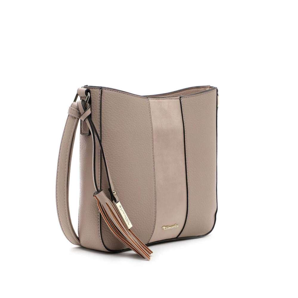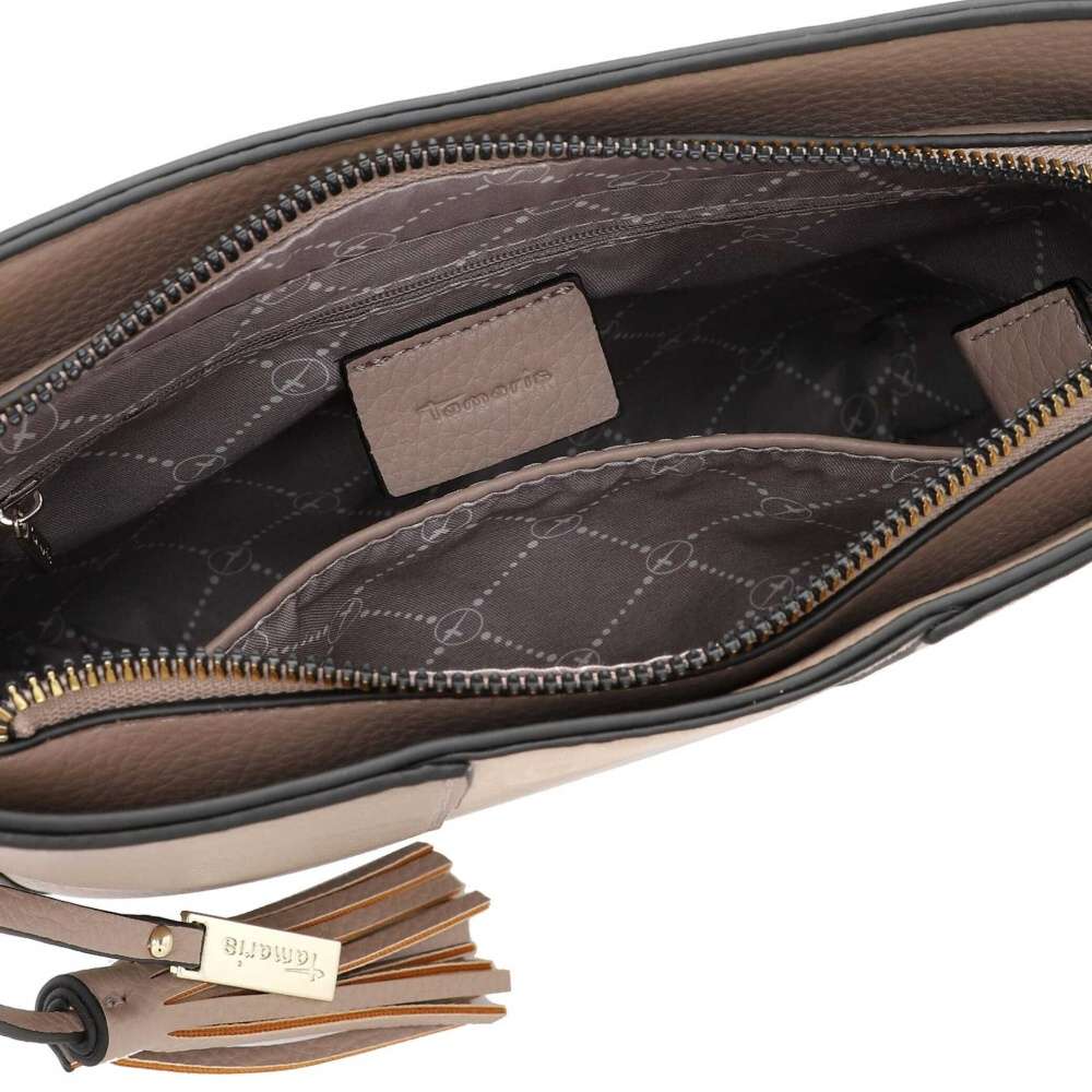 Tato menší crossbody kabelka značky TAMARIS jistě potěší nejednu ženu, která se ráda cítí výjimečně a zároveň hledá kousek, který snadno sladí se svým šatníkem. Zajímavé provedení svršku doladí logo značky a ozdobná třáseň dodá na půvabu celkového vzhledu. Na zadní straně se nachází menší kapsička na drobnosti. Do hlavní kapsy se dostanete pomocí zipu na horním kraji, zde se nachází dvě malé kapsičky. Do města či na schůzku s přáteli bude tento model pro Vás volbou číslo jedna.