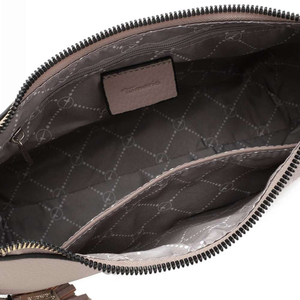Detailní informace Tato menší kabelka značky TAMARIS jistě potěší nejednu ženu, která se ráda cítí výjimečně a zároveň hledá kousek, který snadno sladí se svým šatníkem. Zajímavé provedení svršku doladí logo značky a ozdobná třáseň dodá na půvabu celkového vzhledu. Na zadní straně se nachází menší kapsička na drobnosti. Do hlavní kapsy se dostanete pomocí zipu na horním kraji, zde se nachází dvě malé kapsičky. Nosit ji lze v ruce díky propracovanému krátkému popruhu i přes rameno s délkově nastavitelným popruhem, který lze odepnout. Do města či na schůzku s přáteli bude tento model pro Vás volbou číslo jedna.