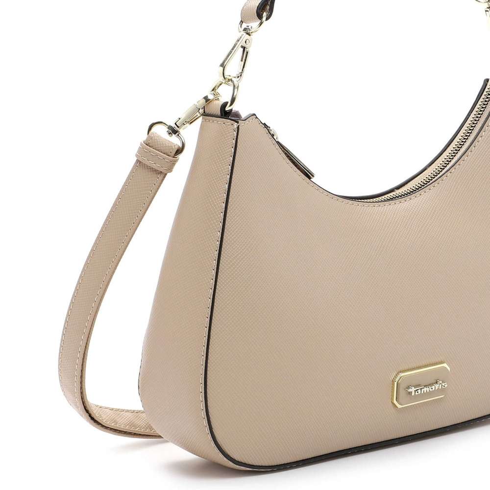 Tato kabelka Tamaris přináší nadčasový šarm v béžovém provedení s elegantním nápisem značky. Prostor k uložení vašich věcí je uzavřen zipem a obsahuje dvě menší kapsičky pro dokonalou organizaci drobností. Délkově nastavitelný popruh přidává flexibilitu při nošení a pevný popruh bude elegantní způsob nošení, navíc jsou oba odepínatelné. Celkově je tento model kabelky skvělou kombinací šarmu, elegance a praktičnosti, který se stane dokonalým doplňkem pro každou příležitost.