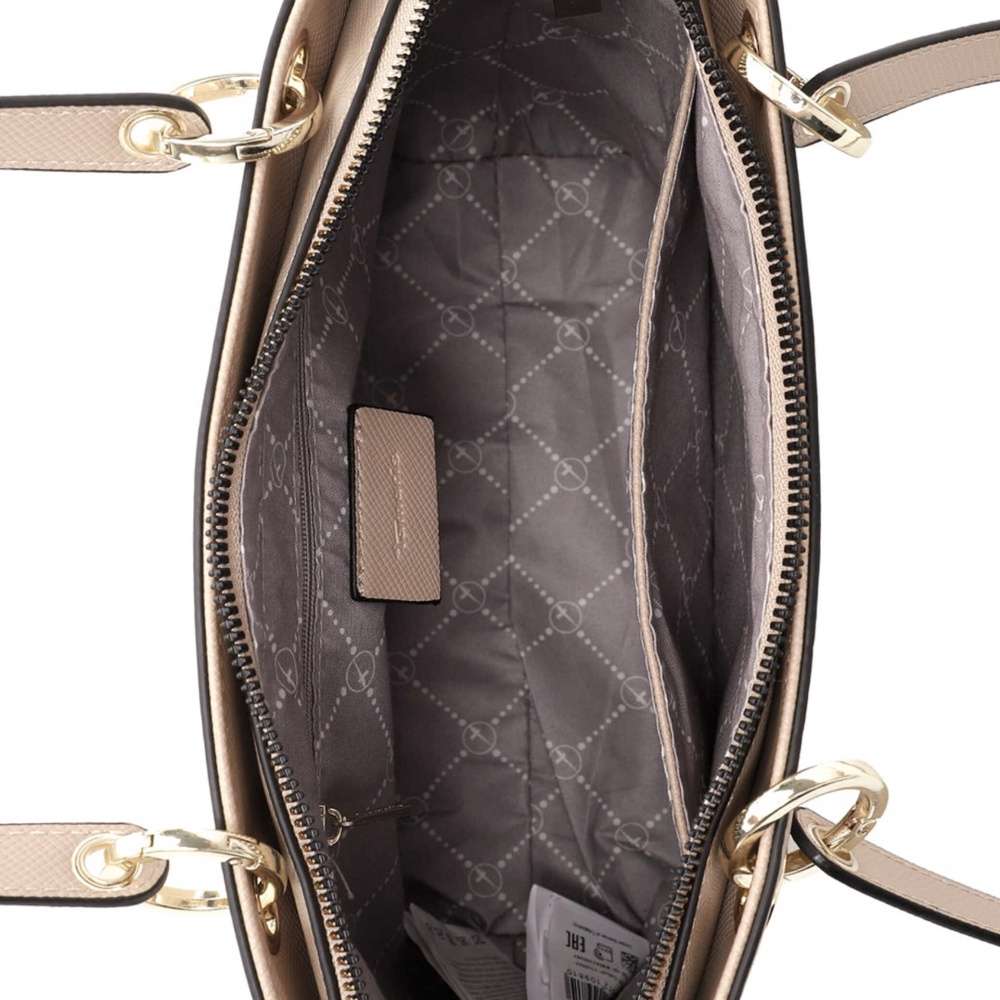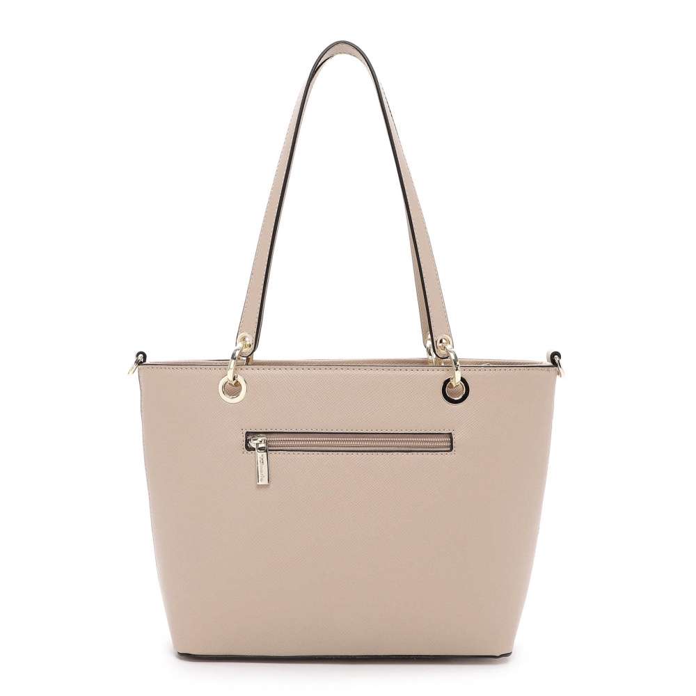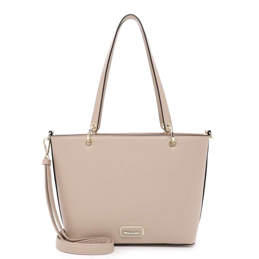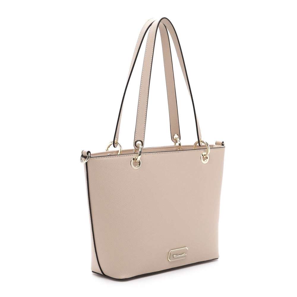 Kabelka Tamaris se vyznačuje nadčasovým béžovým svrškem a zdobným logem značky, který vytváří elegantní a stylový doplněk. Vrchní zip uzavírá prostor pro uložení věcí, který obsahuje také dvě menší kapsičky pro uspořádání drobností. Další kapsička se nachází na zadní části kabelky pro snadný přístup k věcem, které potřebujete mít po ruce. Kabelka má dva pevné popruhy a odepínatelný délkově nastavitelný, díky tomu si můžete zvolit způsob nošení. Kombinace praktičnosti a šarmu činí z této kabelky skvělý doplněk do vašeho outfitu pro různé příležitosti.