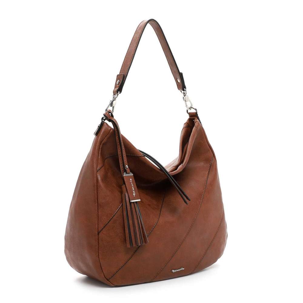 Ideální doplněk ke každému outfitu bude tato kabelka Tamaris, hnědý svršek je působivě poskládán a doplněný logem značky. Třáseň visící zboku dotváří moderní vzhled a další prvek je na druhém boku, který uzavírá malou kapsičku. Uzavřený zipem prostor s dvěma menšími kapsičkami uvnitř nabízí skvělé možnosti pro uspořádání a uchování vašich nezbytností. Novou oblíbenou tašku lze snadno nosit přes rameno díky délkově nastavitelnému ramennímu popruhu a kratšímu pevnému, oba jsou odepínatelné. S touto kabelkou od Tamaris nejen procházíte s elegancí, ale také si s sebou nesete praktický a vkusný doplněk pro každý den. Rozměry: cca V 34 cm x Š 35 cm x H 11,5 cm Vnitřní uspořádání: kabelka není dělená Kabelka má délkově nastavitelný popruh, který lze odepnout. Maximální délka nastavitelného popruhu je cca 140 cm.