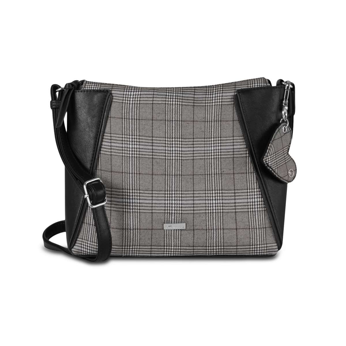 Originální Crossbody kabelka s károvaným vzorem v černo-šedé barvě, značky Tamaris.
