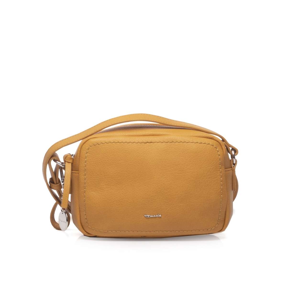 Crossbody kabelka Tamaris s oblázkovým svrškem, který zdobí malé logo značky a odepínatelný přívěsek.