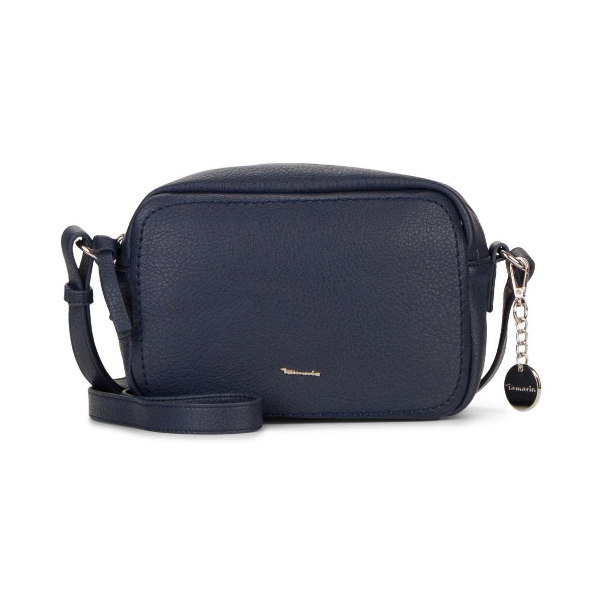 Crossbody kabelka Tamaris s oblázkovým svrškem, který zdobí malé logo značky a odepínatelný přívěsek.
