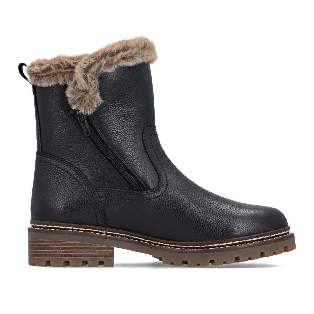 Obuv REMONTE – jedná se o vyšší řadu značky RIEKER, tato obuv se vyznačuje vynikající kombinací svrchních materiálů. Tyto stylové zimní boty z kvalitní kůže jsou ideální volbou pro chladné a sychravé dny, kdy Vaše nohy budou chráněny nepromokavou vrstvou k zabránění prosáknutí vlhkosti. Nadčasový design dotváří kožešinový lem v horní části a decentní logo značky, které podtrhují jejich moderní vzhled. Praktické boční zipy usnadní obouvání, zatímco vnitřek s hřejivou podšívkou z ovčí vlny a termo stélkou poskytne maximální tepelný komfort. Každý krok bude doprovázen speciálně navrženou podešví snižující riziko uklouznutí. Tento model je skvělý společník na zimu, který spolehlivě zahřeje a zároveň podtrhne váš styl každý den. Technologie: Thermo stélka – ze spodní strany je hliníková fólie, která poskytuje výborné termoizolační vlastnosti a chrání tak chodidlo před chladem. Remonte TEX – funkční vrstva, díky které je svršek boty nepromokavý a přesto prodyšný. GLASS FIBRE SOLE – inovativní podrážka ze skleněných vláken nabízí extra přilnavost i na zledovatělém povrchu. Tato bota je vybavena vyjímatelnou stélkou. Podšívka je vyrobena z pravé ovčí vlny.
