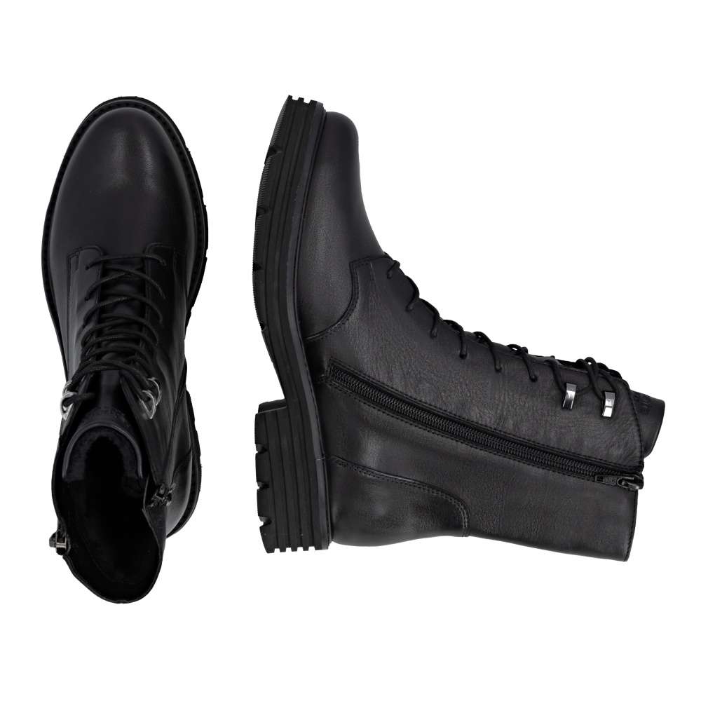 Tyto kotníkové boty RIEKER v trendy koženém černém provedení zaujmou moderním designem a praktickými detaily. Dekorační zip na vnější straně spolu s logem značky přidávají stylový akcent, který zvýrazní váš outfit. Pohodlné obouvání zajistí kombinace šněrování a funkčního bočního zipu pro rychlé nazutí bez potřeby šněrování. Vnitřní textilní podšívka a vyjímatelná stélka se postarají o komfort během celého dne, kdy máte možnost snadné údržby nebo výměny za jinou Vámi preferovanou stélku. Stabilní podešev s výrazným vzorem zaručí bezpečný krok i v nepříznivém počasí a navíc svým designem podtrhne módní vzhled těchto bot. Tyto kotníkové boty budou perfektní doplněk pro každodenní nošení, který spojuje atraktivní vzhled s praktickými prvky a maximálním komfortem. Technologie: Tato bota je vybavena vyjímatelnou stélkou. Lite'n Soft - maximální komfort při nošení vytváří kombinace lehké podešve, velmi příjemných materiálů a komfortní stélky.