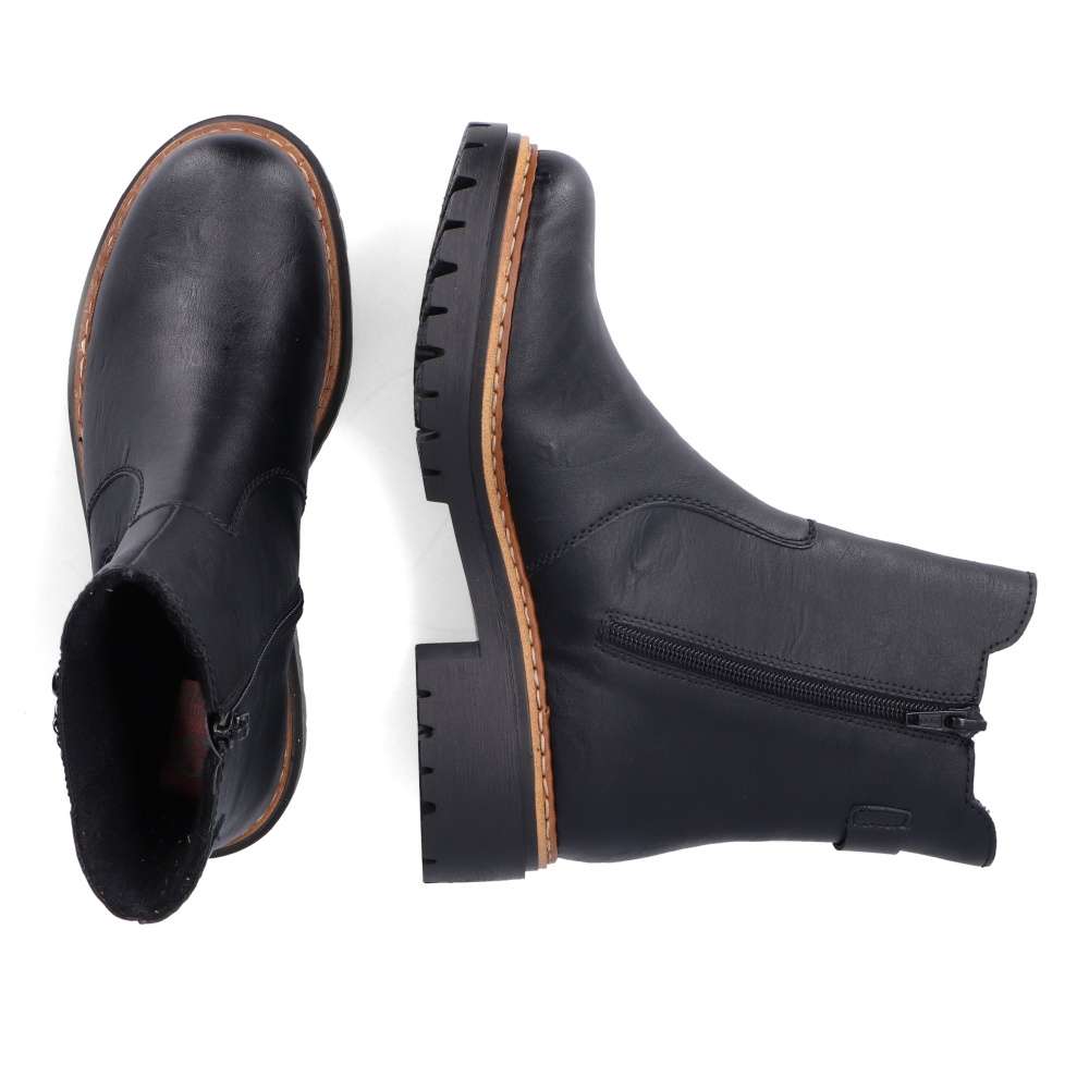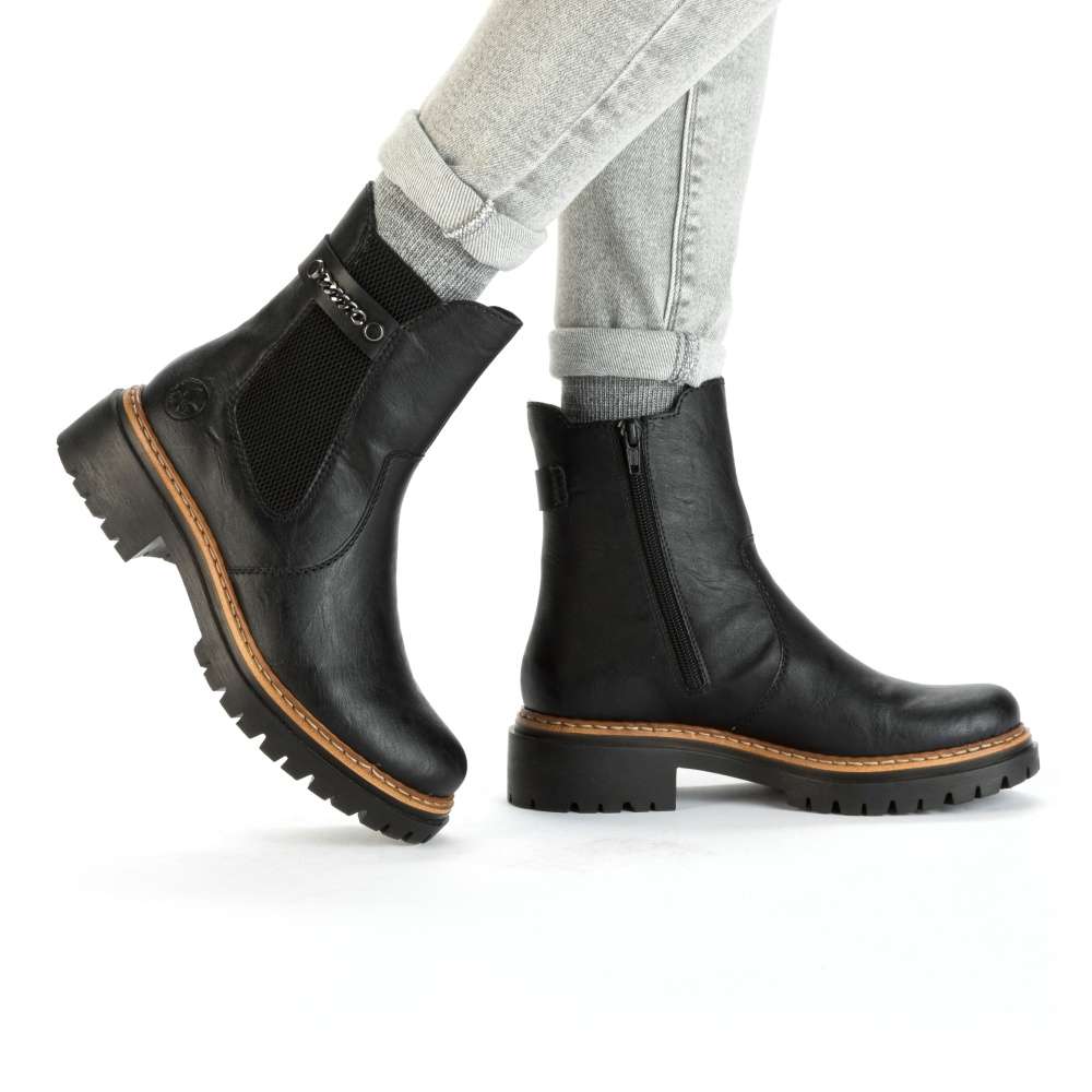 Značka RIEKER poskytuje maximální komfort při nošení obuvi a jako bonus moderní vzhled. Proto zde pro Vás máme tento klasický model vyšší kotníkové obuvi, který je ozvláštněn na vnější straně zajímavou aplikací s řetízkem. Pohodlí na každém kroku Vám zajistí měkká stélka, hřejivá podšívka, vyšší flexibilní podešev kontrastně lemovaná a jednoduché obutí Vám zajistí postranní zip. Neváhejte a vsaďte na tento zimní model od značky RIEKER! Technologie: Antistress – podešev je díky této technologii lehká, flexibilní, absorbuje nárazy při došlapu a snadno se přizpůsobí každé noze.