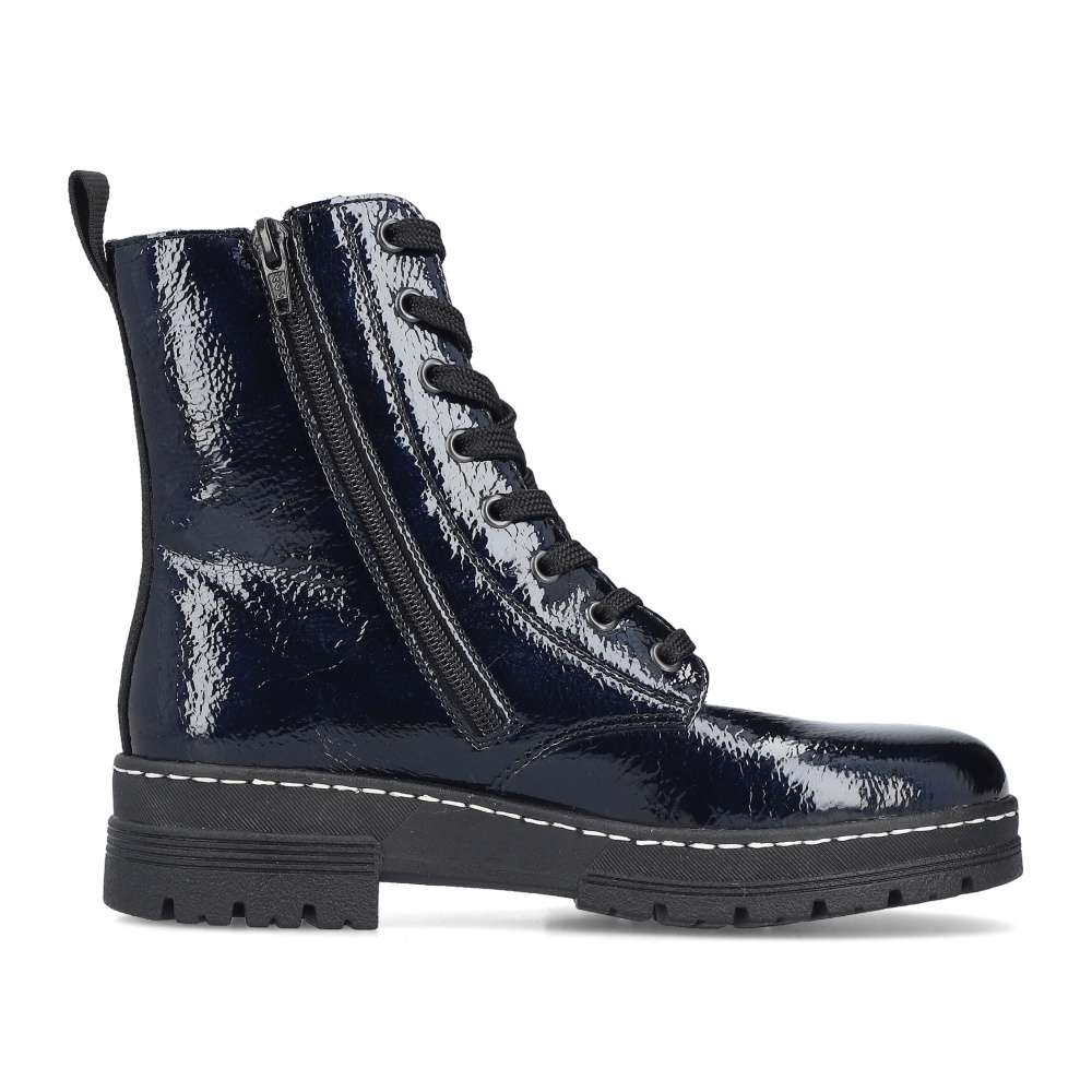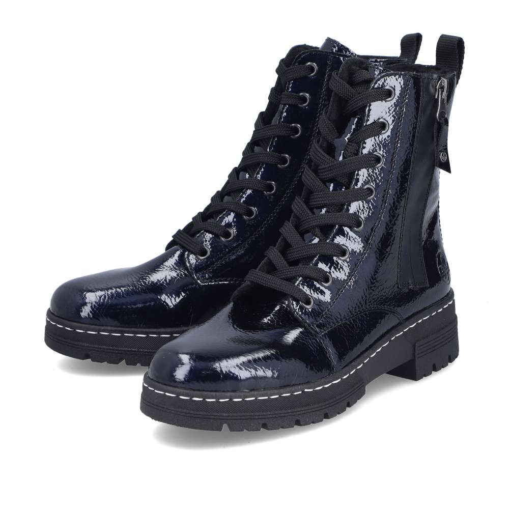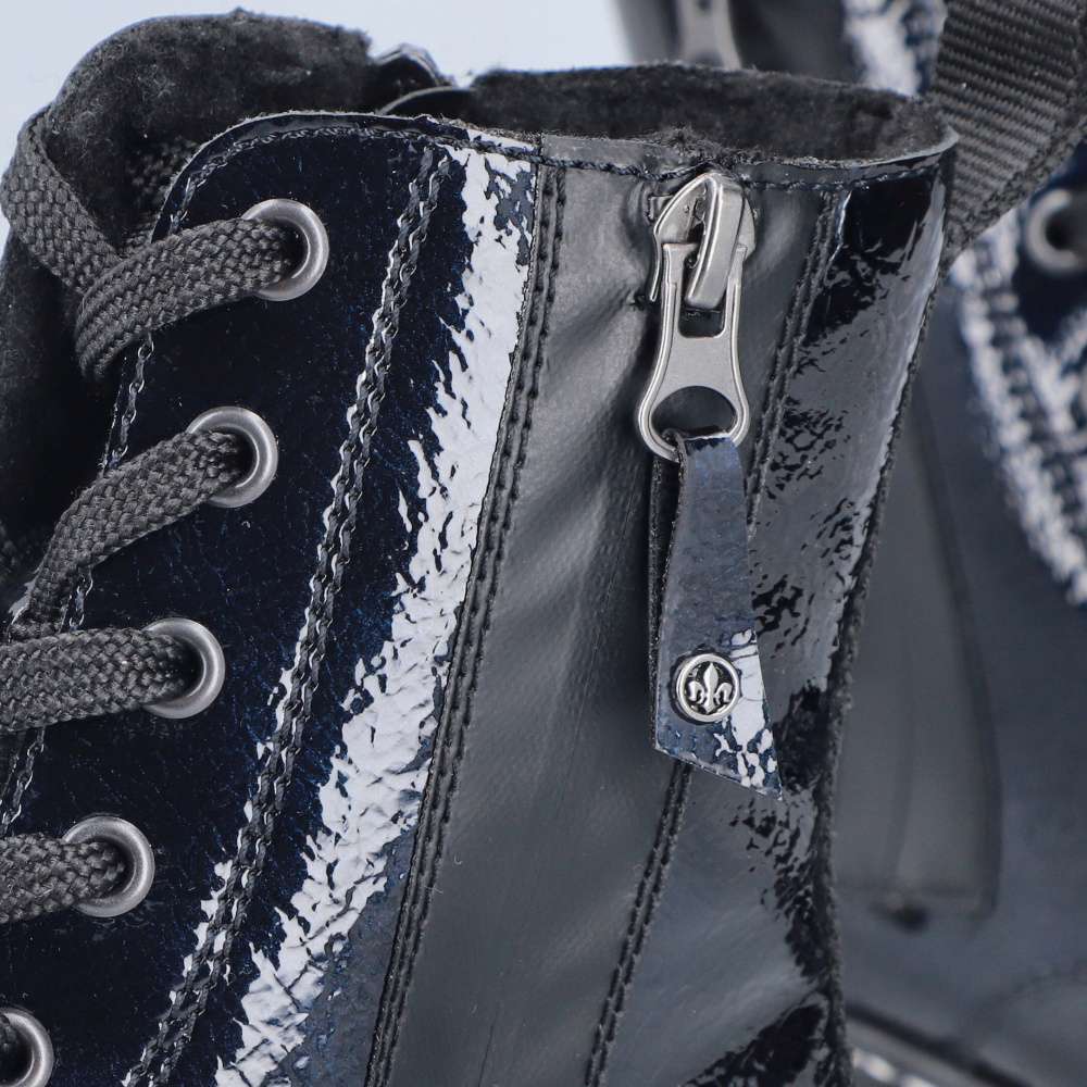 Módní styl značky RIEKER se naplno projevuje v těchto kotníkových botách v modré barvě s lesklou úpravou svršku. Design oživuje atraktivní zip umístěný na vnější straně a decentní logo značky, které dodává obuvi charakteristický podpis. Vnitřní zip zajistí rychlé a snadné obutí, zatímco šněrování umožní dokonalé přizpůsobení podle tvaru nohy a vytvoří dokonalý komfort při nošení. Nazutím budou Vaše nohy chráněny před zimou hřejivým textilním zateplením a každý nášlap bude doprovázen měkkou stélkou, která je vyjímatelná a poskytuje možnost snadné údržby nebo výměny. Pohodlí při chůzi poskytne vyšší stabilní podešev s nárazy tlumící funkcí a její působivé lemování světlou nití dodává botám stylový detail, který zaujme na první pohled. Tento model spojuje originalitu s pohodlím, díky čemuž se stane výrazným doplňkem vašeho podzimního a zimního šatníku. Technologie: Antistress – díky čtyřem antistresovým vlastnostem – lehkosti, pružnosti, prostornosti a vynikající absorpci nárazů – vám boty RIEKER nabídnou komfortnější chůzi. Rieker TEX – funkční vrstva, díky které je bota nepromokavá a přesto prodyšná. Rieker Soft – unikátní stélka vyrobená z prodyšného materiálu, která svým tvarem a materiálem zajistí pocit pohodlí při celodenním nošení. Tato bota je vybavena vyjímatelnou stélkou.