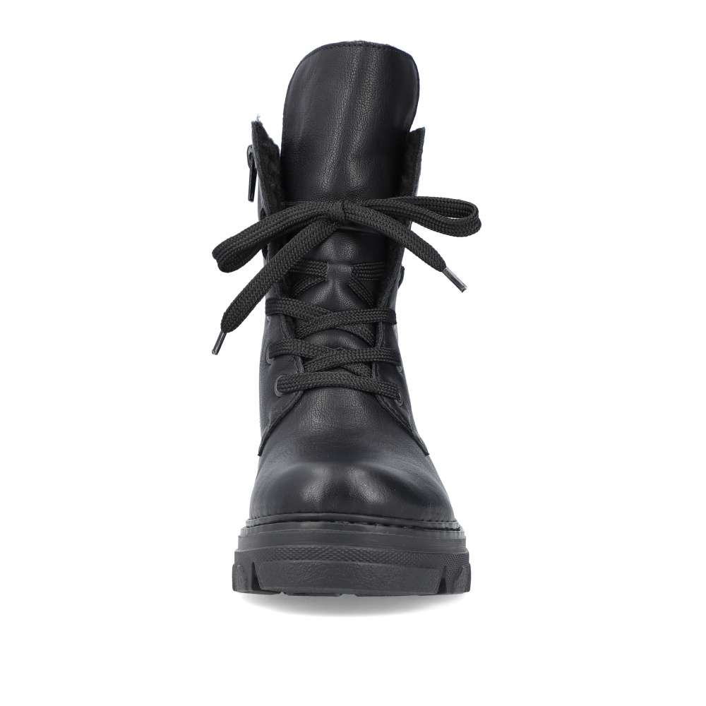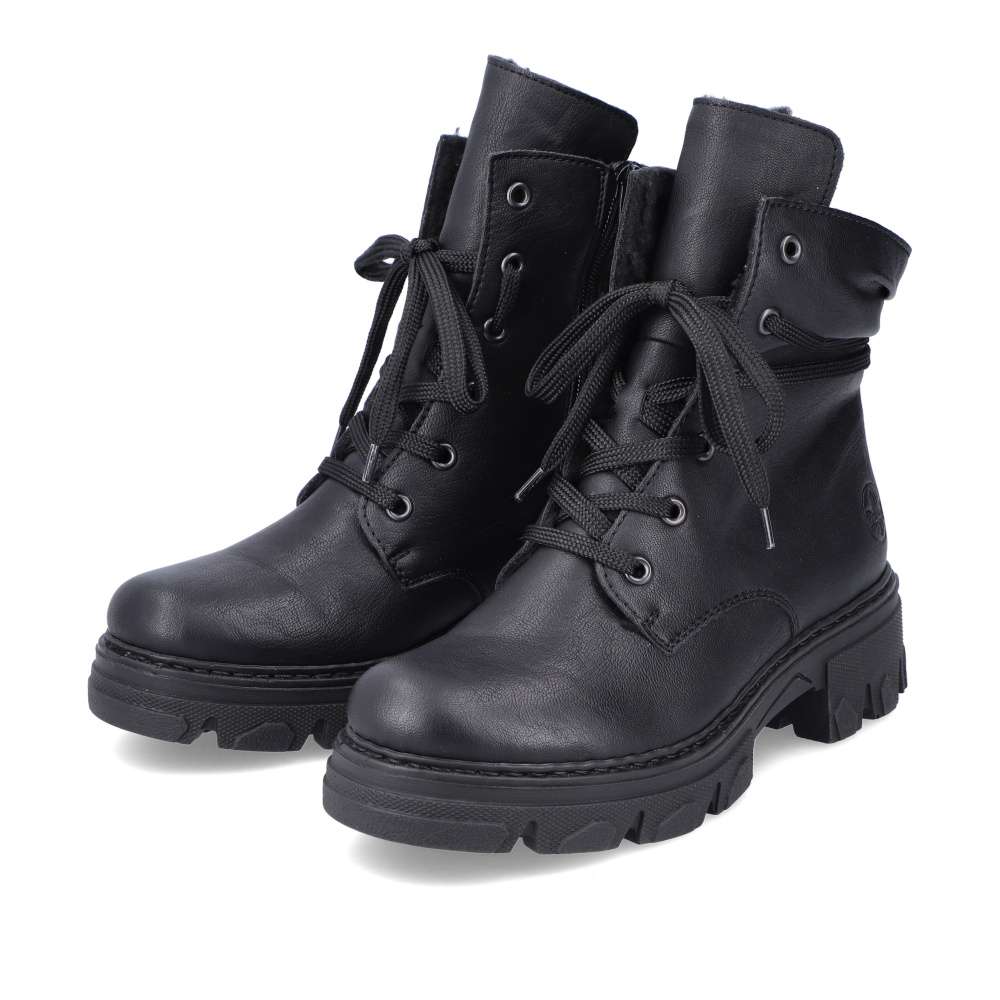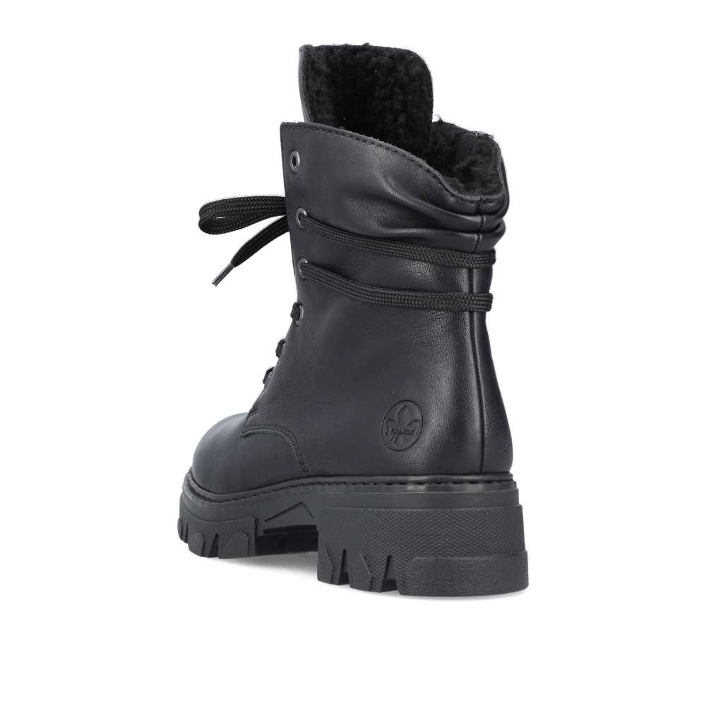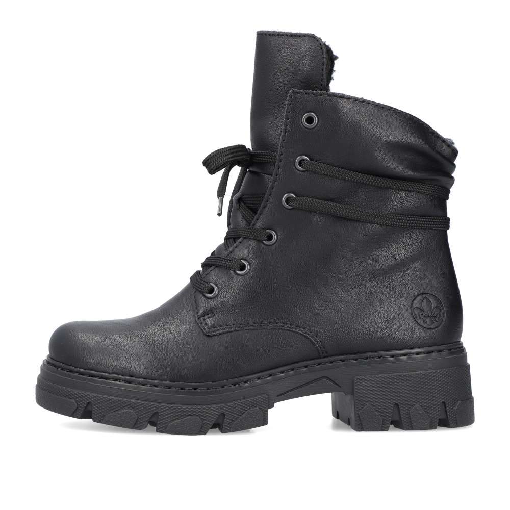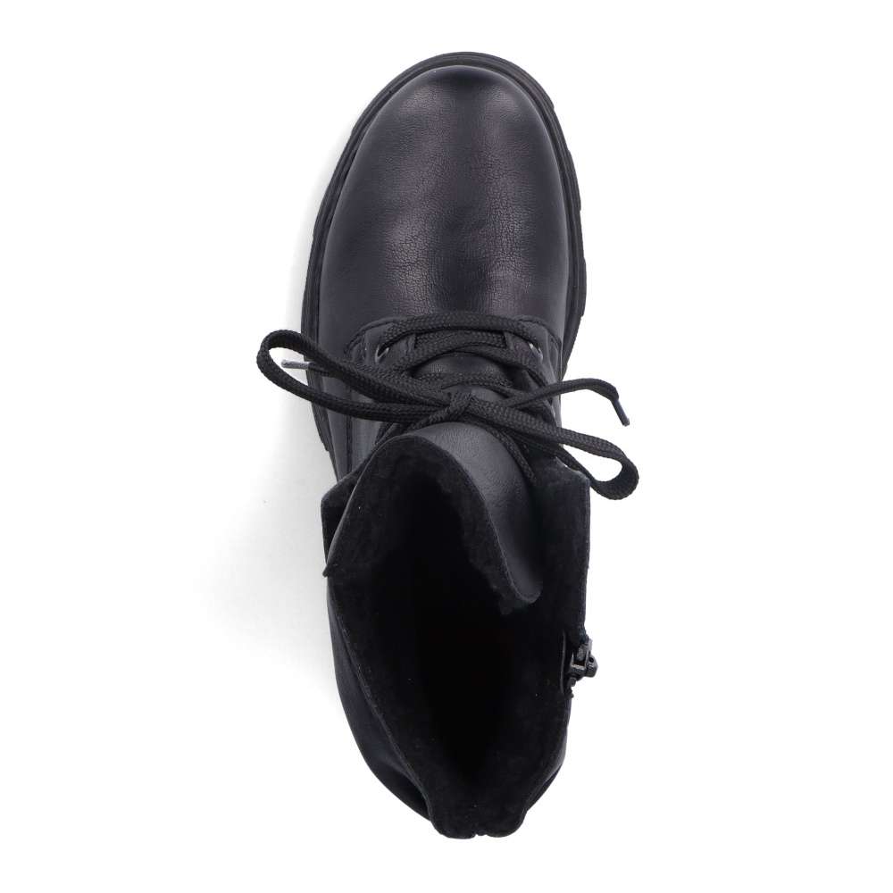 Značka RIEKER nabízí tento zimní kousek snadno kombinovatelný díky jednoduchému designu. Černý svršek nikdy nezklame a má ozdobné šněrování kolem kotníku pro moderní vzhled. Hřejivá podšívka udrží nohy v teple i v chladnějším počasí a měkká stélka Vás bude provázet pohodlím i při celodenních pochůzkách. Na vnitřní straně se nachází zip pro rychlé obutí a šňůrkami si můžete obuv přizpůsobit na Vaši nohu. Podešev s hrubším vzorem částečně zamezí uklouznutí, a tak cesta do práce nebo na nákupy bude bezpečná. Technologie: Antistress – podrážka je díky této technologii lehká, flexibilní, absorbuje nárazy při došlapu a snadno se přizpůsobí každé noze.