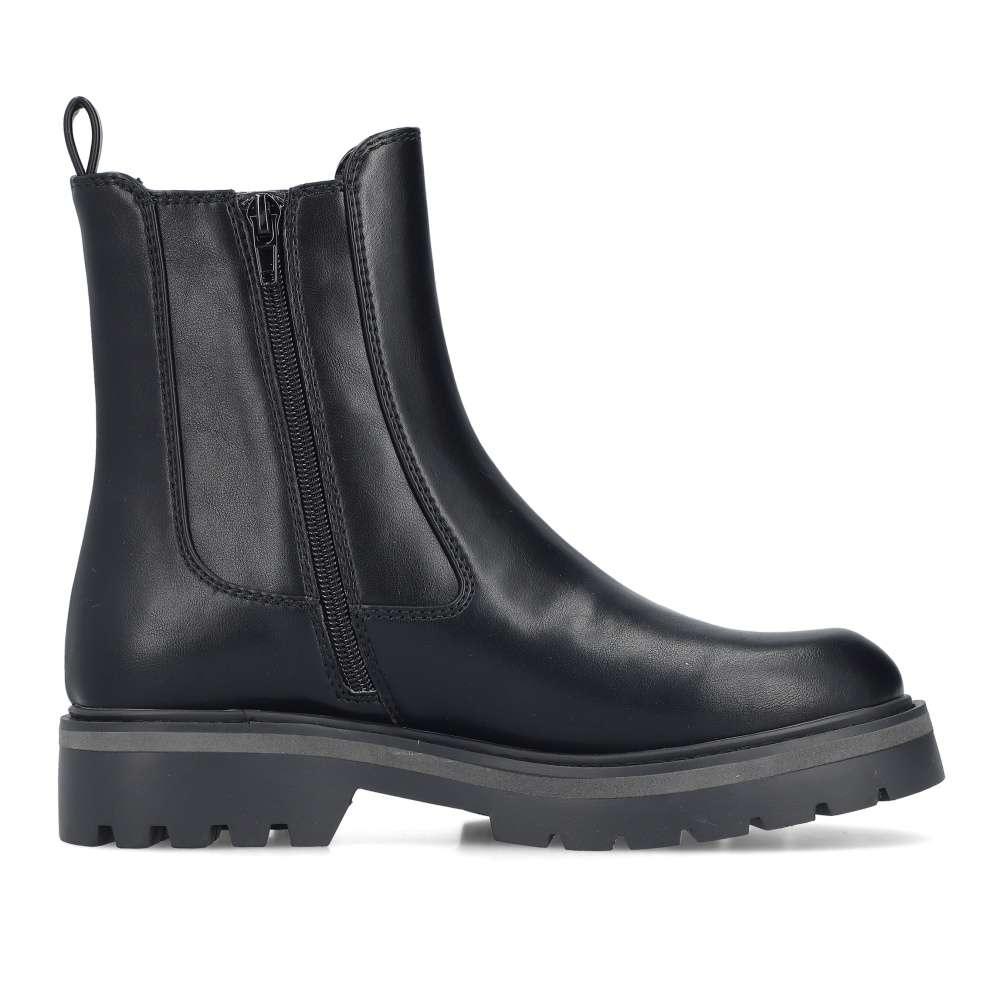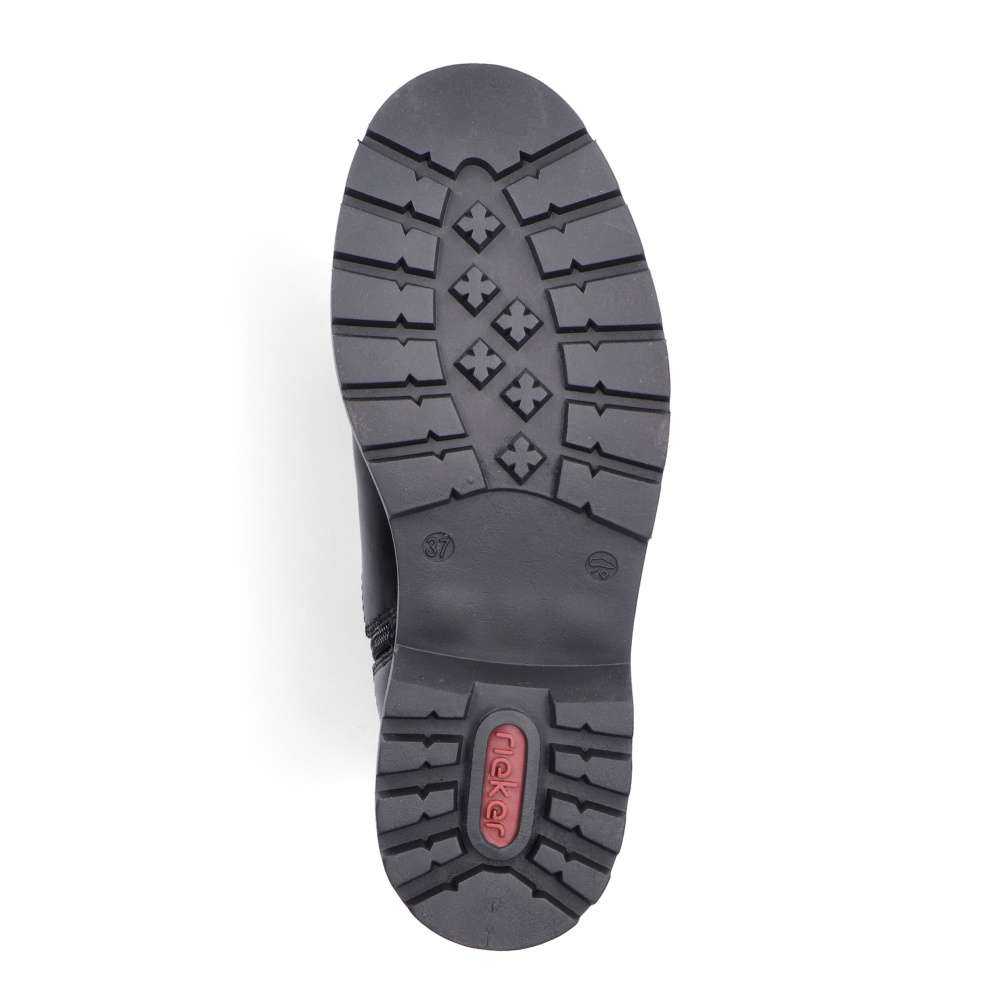 Kotníkové boty RIEKER v klasické černé barvě jsou skvělou volbou pro ženy, které hledají stylový a zároveň pohodlný doplněk do každodenního šatníku. Výrazná podešev dodává modelu moderní vzhled a zajišťuje stabilitu při chůzi, navíc technologie tlumení nárazů se postará o vyjímečný komfort během celého dne. Elastická boční část a boční zip umožňují snadné obutí a dokonalé přizpůsobení bez zbytečného zapínání, nazutím si budete užívat příjemnou textilní podšívku. Tyto kotníkové boty RIEKER jsou ideální pro běžné nošení do práce i na procházky městem. Technologie: Antistress – díky čtyřem antistresovým vlastnostem – lehkosti, pružnosti, prostornosti a vynikající absorpci nárazů – vám boty RIEKER nabídnou komfortnější chůzi. Systém Vario - nastavení šířky vsazenou elastickou částí, která činí boty variabilní co do šířky.
