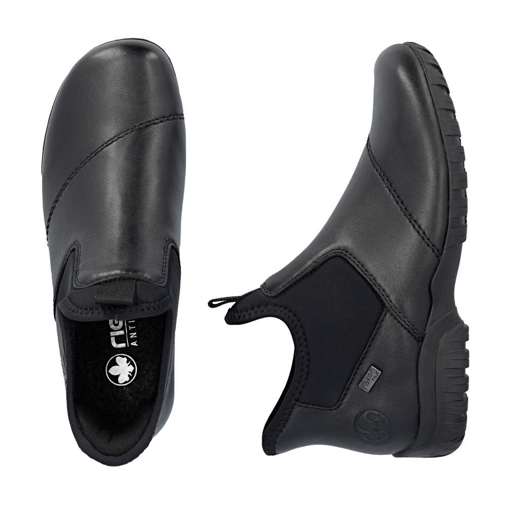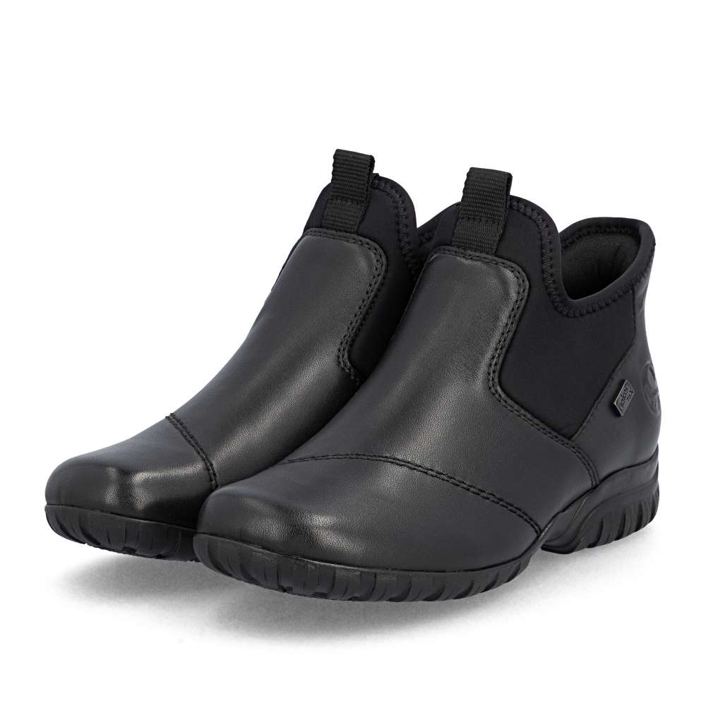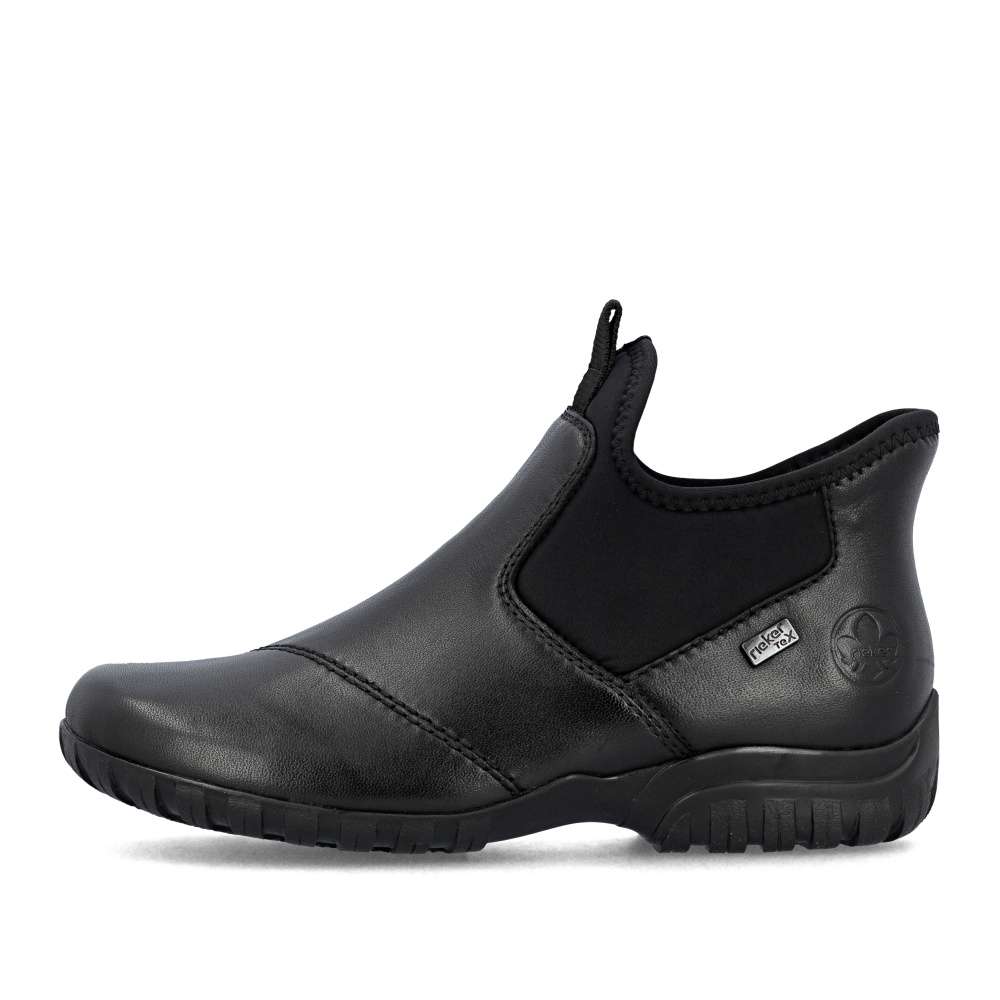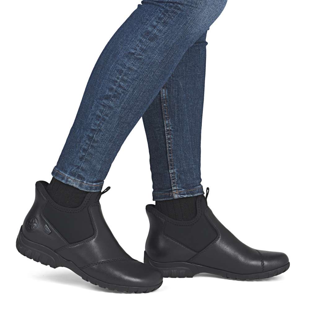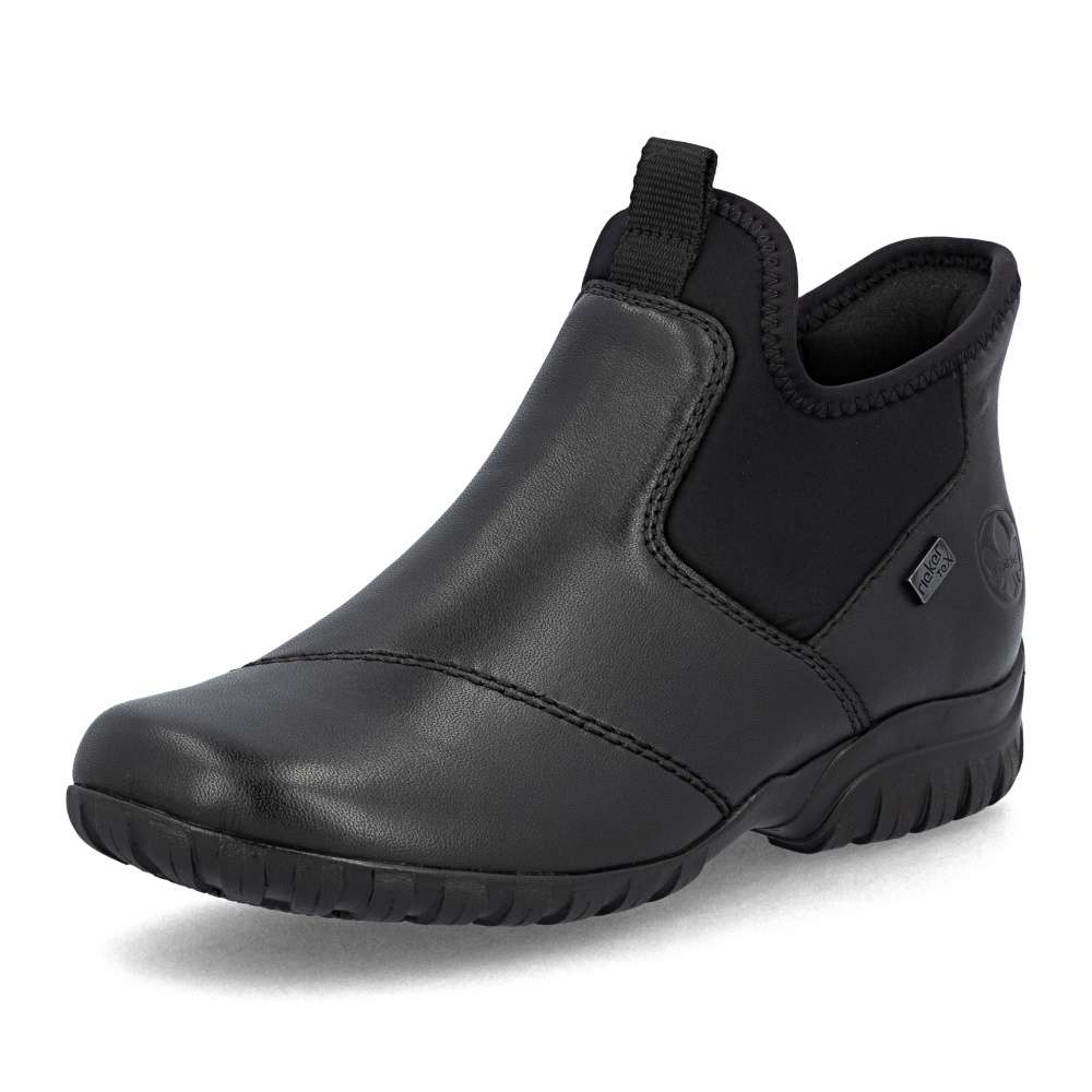 Kombinace černého koženého svršku a textilních částí, dekorovaná liniemi prošití dodává těmto kotníkovým botám RIEKER moderní a zároveň praktický vzhled. Díky nepromokavé vrstvě jsou ideální volbou i do nepříznivého počasí. Jednoduché nazutí zajišťuje pružný materiál spolu s tvarově stabilní patní částí, která zajistí rychlé vklouznutí do vyjímatelné stélky a příjemné podšívky těchto bot. Komfort každým krokem zajistí podešev s technologií tlumení nárazů. Spolehlivá obuv pro každý den, která nabízí komfort a nadčasový design pro snadné kombinování s oblečením. Technologie: Antistress – díky čtyřem antistresovým vlastnostem – lehkosti, pružnosti, prostornosti a vynikající absorpci nárazů – vám boty RIEKER nabídnou komfortnější chůzi. Rieker TEX – funkční vrstva, díky které je bota nepromokavá a přesto prodyšná. Ready2GO – obout a jít, díky tvarově stabilní patní části je obouvání snadné bez použití pomůcek a rukou. Tato bota je vybavena vyjímatelnou stélkou.