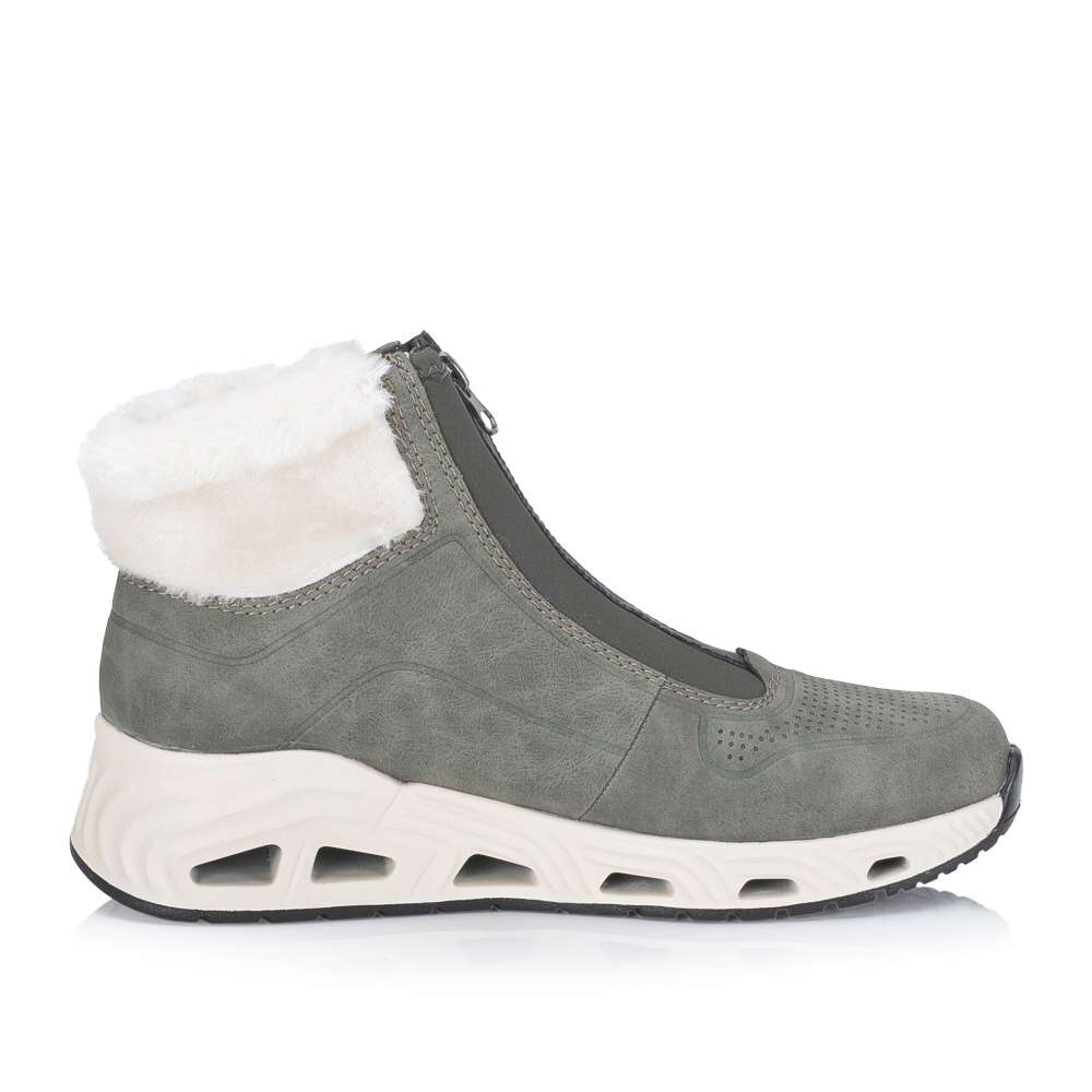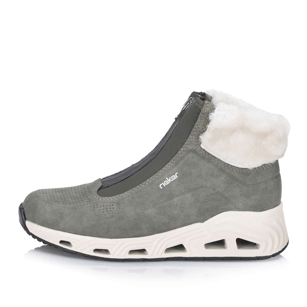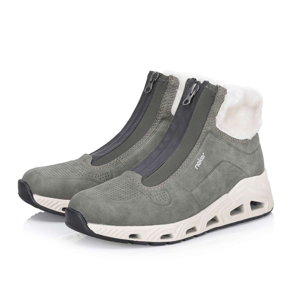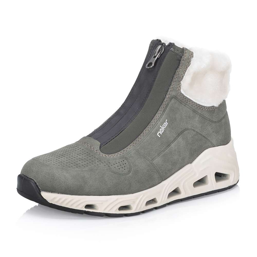 Stylové obutí do zimních dnů vám zajistí tyto boty značky RIEKER. Zelený svršek má zajímavé linie a kožíšek lemující horní okraj přidá na atraktivitě vzhledu módní kontrast. Díky zipu umístěnému v části nártu je jednoduše obujete. Každým krokem oceníte vyšší podešev tlumící nárazy při chůzi a zajišťující stabilitu každým krokem. Tyto boty značky RIEKER jsou ideální volbou pro zimní dny, kdy chcete zůstat v teple, suchu a zároveň vypadat stylově. Technologie: Antistress – díky čtyřem antistresovým vlastnostem – lehkosti, pružnosti, prostornosti a vynikající absorpci nárazů – Vám boty RIEKER nabídnou komfortnější chůzi. RiekerSoft – unikátní stélka, která změkčuje došlap a přizpůsobí se tvaru Vašeho chodidla. Tato bota je vybavena vyjímatelnou stélkou.
