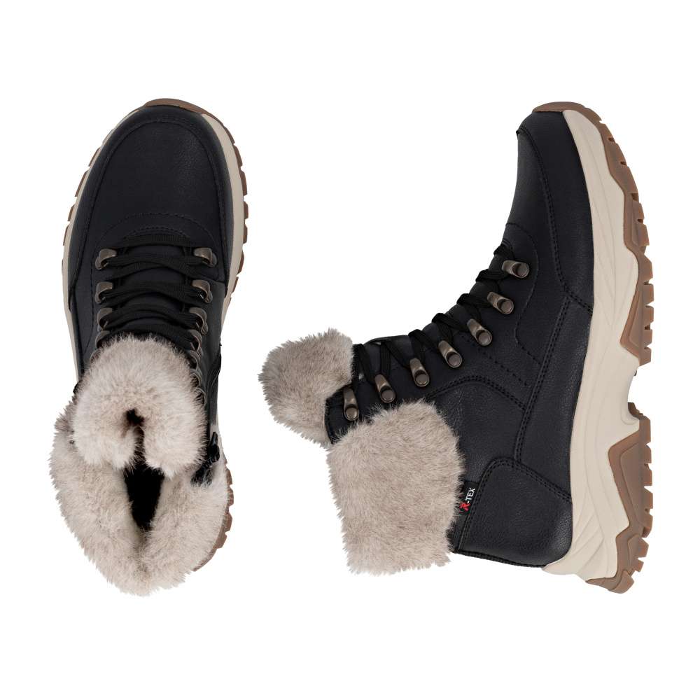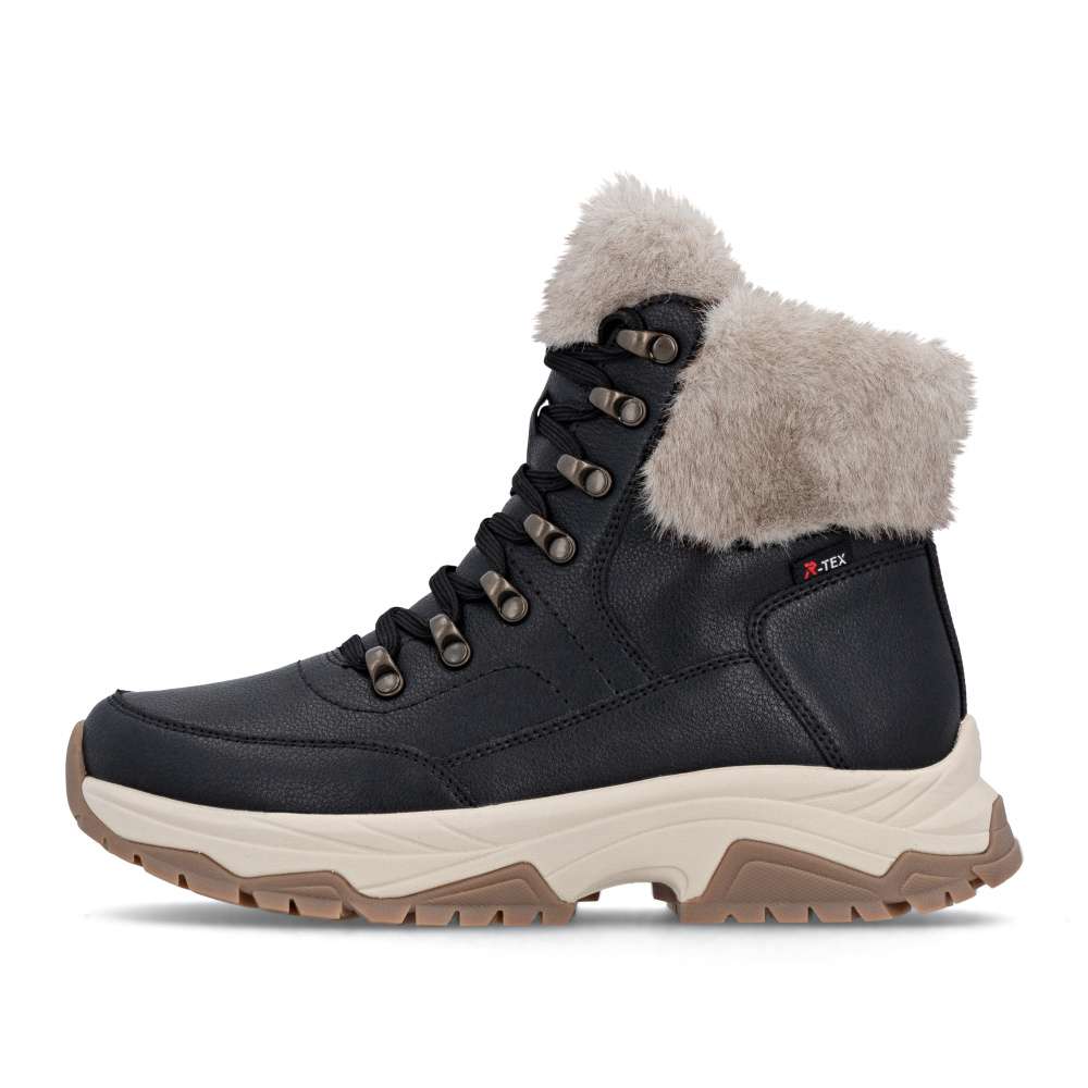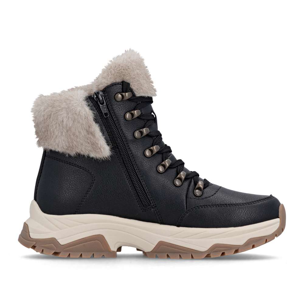 Pokud hledáte zimní obuv, která vás zahřeje, ochrání před nepříznivým počasím a zároveň podtrhne váš styl, tento model je pro vás tou pravou volbou. Černý kožený svršek je nadčasový a snadno kombinovatelný s jakýmkoli outfitem – od džín až po sukně či zimní kabát. Textilní části na svršku jsou nejen vizuálně atraktivní, ale zároveň podtrhují zimní charakter tohoto modelu svým kožešinovým vzhledem. O vaši pohodu se postará TEX membrána materiálu svršku, která spolehlivě ochrání před vlhkostí a sněhem, přičemž zůstává prodyšná. To znamená, že vaše nohy budou stále v suchu a v komfortním klimatu. Uvnitř vás čeká luxusní zateplení z pravé ovčí vlny, která udrží teplo po celý den, a měkká vyjímatelná stélka, kterou si můžete jednoduše vyměnit za ortopedickou nebo ji jen vyčistit. Funkční šněrování vám umožní přizpůsobit si botu přesně podle tvaru nohy, zatímco boční zip zajistí rychlé a pohodlné obouvání bez zbytečné námahy. Nárazy tlumící podešev se postará o stabilitu a jistotu každého kroku a svým precizním provedením dotváří atraktivní vzhled těchto bot. Tyto zimní kotníkové boty budou vaším spolehlivým společníkem na cestu do práce, městské procházky nebo trávení volného častu. Dokonalá souhra moderního vzhledu a maximálního pohodlí díky funkčním technologiím to jsou boty RIEKER Sport. Technologie: Antistress – díky čtyřem antistresovým vlastnostem – lehkosti, pružnosti, prostornosti a vynikající absorpci nárazů – vám boty RIEKER nabídnou komfortnější chůzi. Rieker TEX – funkční vrstva, díky které je svršek boty nepromokavý a přesto prodyšný. Rieker Soft – unikátní stélka vyrobená z prodyšného materiálu, která svým tvarem a materiálem zajistí pocit pohodlí při celodenním nošení. Thermo stélka – ze spodní strany je hliníková fólie, která poskytuje výborné termoizolační vlastnosti a chrání tak chodidlo před chladem. Tato bota je vybavena vyjímatelnou stélkou. Podšívka je vyrobena z pravé ovčí vlny.