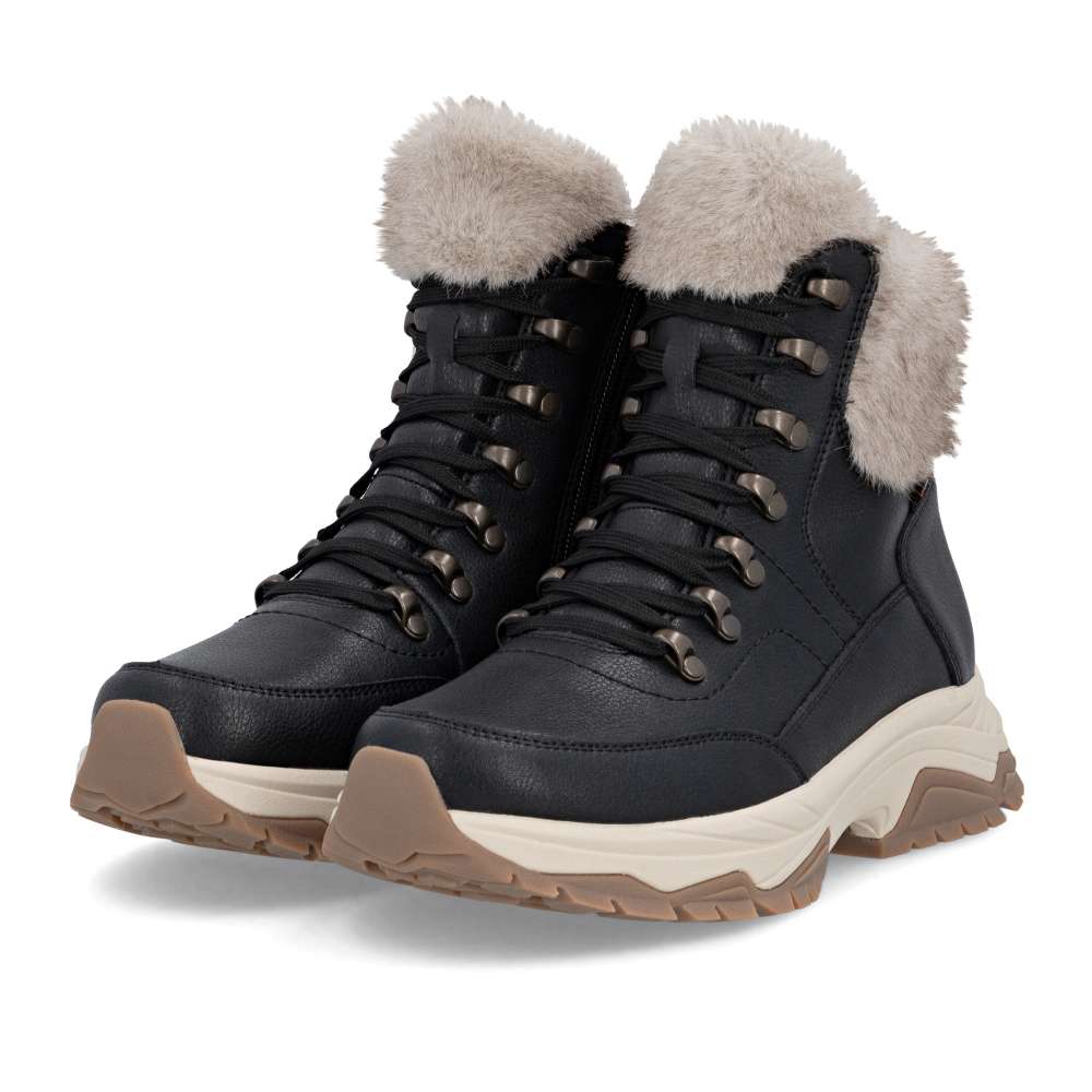 Detailní informace Pokud hledáte zimní obuv, která vás zahřeje, ochrání před nepříznivým počasím a zároveň podtrhne váš styl, tento model je pro vás tou pravou volbou. Černý kožený svršek je nadčasový a snadno kombinovatelný s jakýmkoli outfitem – od džín až po sukně či zimní kabát. Textilní části na svršku jsou nejen vizuálně atraktivní, ale zároveň podtrhují zimní charakter tohoto modelu svým kožešinovým vzhledem. O vaši pohodu se postará TEX membrána materiálu svršku, která spolehlivě ochrání před vlhkostí a sněhem, přičemž zůstává prodyšná. To znamená, že vaše nohy budou stále v suchu a v komfortním klimatu. Uvnitř vás čeká luxusní zateplení z pravé ovčí vlny, která udrží teplo po celý den, a měkká vyjímatelná stélka, kterou si můžete jednoduše vyměnit za ortopedickou nebo ji jen vyčistit. Funkční šněrování vám umožní přizpůsobit si botu přesně podle tvaru nohy, zatímco boční zip zajistí rychlé a pohodlné obouvání bez zbytečné námahy. Nárazy tlumící podešev se postará o stabilitu a jistotu každého kroku a svým precizním provedením dotváří atraktivní vzhled těchto bot. Tyto zimní kotníkové boty budou vaším spolehlivým společníkem na cestu do práce, městské procházky nebo trávení volného častu. Dokonalá souhra moderního vzhledu a maximálního pohodlí díky funkčním technologiím to jsou boty RIEKER Sport.