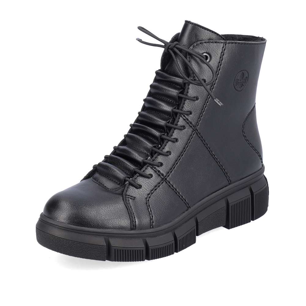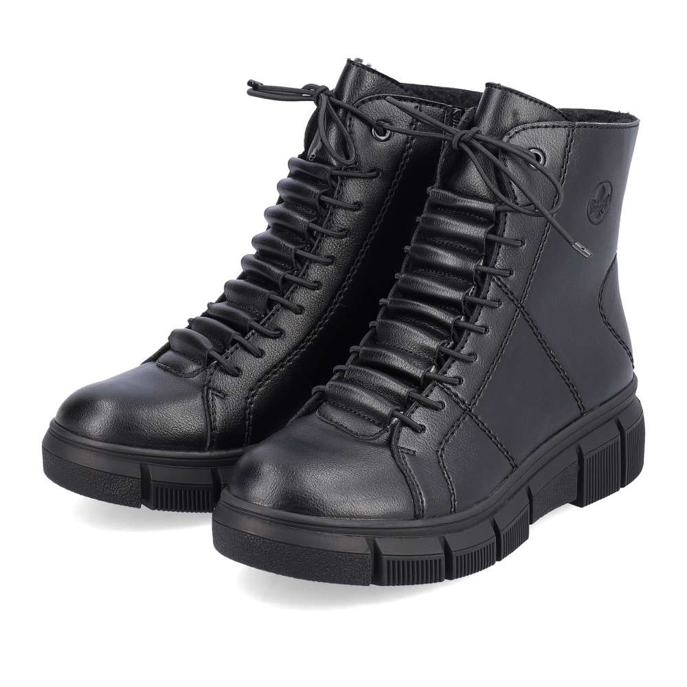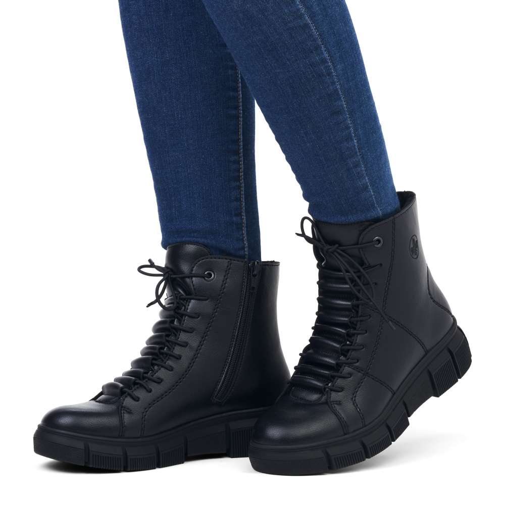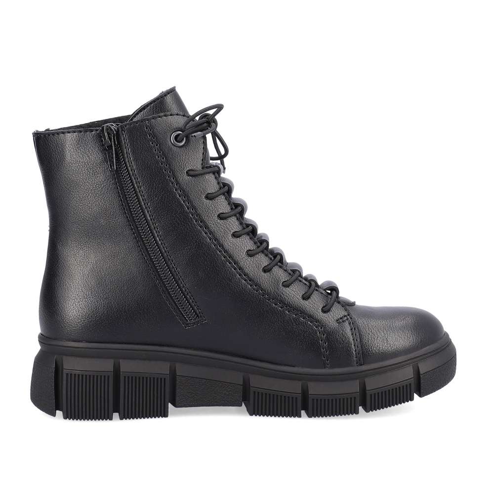 Stylová dámská kotníková bota RIEKER, dokonale podtrhne Vaši osobnost, a především doplní oblečení v zimních dnech. Svršek má hladké provedení doplněné jemným prošitím. Jednoduché obutí zajistí zip z vnitřní strany a stylovým šněrováním si upravíte obvod přes nárt. Vyšší podešev se vzorem zajistí stabilitu, zateplení komfort a příjemné pohodlí při procházkách nebo pracovních činnostech. Technologie: Antistress – podešev je díky této technologii lehká, flexibilní, absorbuje nárazy při došlapu a snadno se přizpůsobí každé noze.