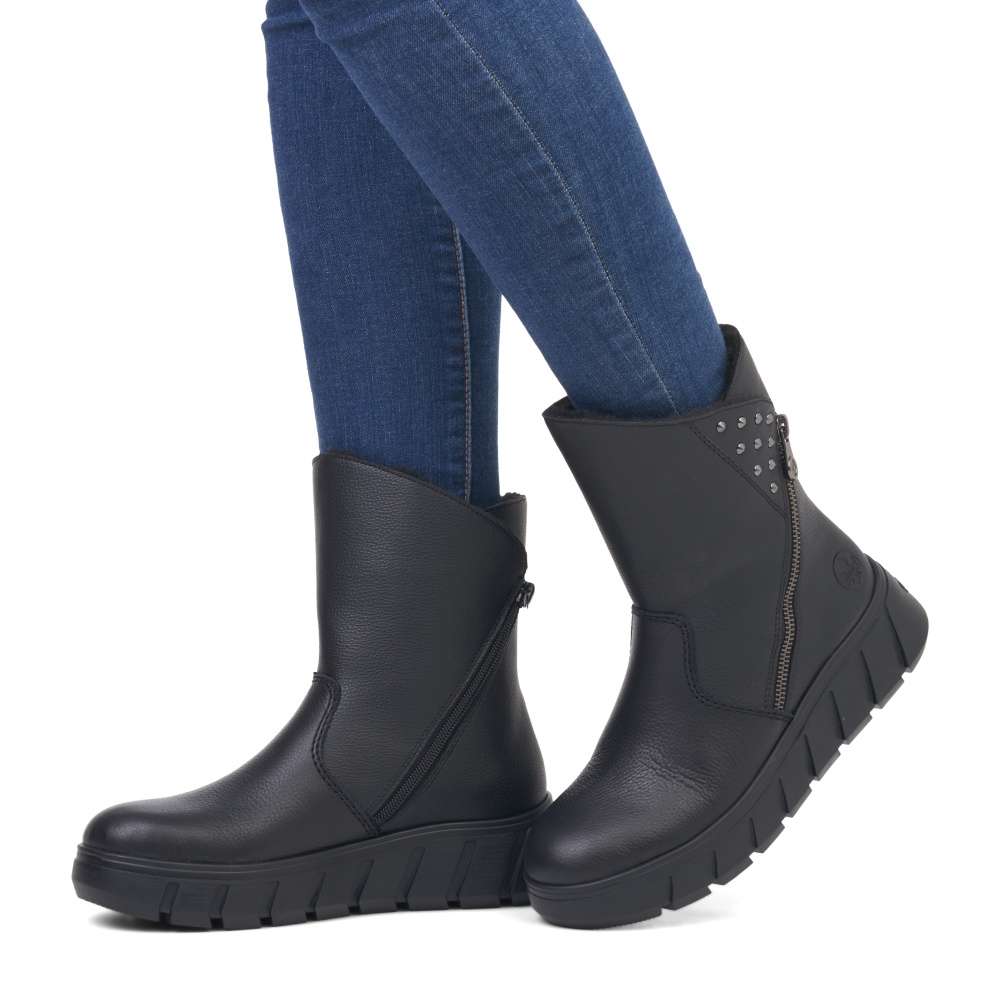 Nerozhodujte se mezi stylem a pohodlím. Dopřejte si obojí. Tato kotníková obuv od značky Rieker je na svršku ozdobena prošíváním, zipem a malými kovovými aplikacemi, které dodávají botě zajímavý vzhled. Díky podšívce z pravé ovčí vlny budou Vaše nohy v teple i v chladném zimním počasí. Tento model jednoduše doplní každý Váš outfit a Vy tak můžete sebevědomě vyrazit do města na procházku. Technologie: Antistress – podešev je díky této technologii lehká, flexibilní, absorbuje nárazy při došlapu a snadno se přizpůsobí každé noze.