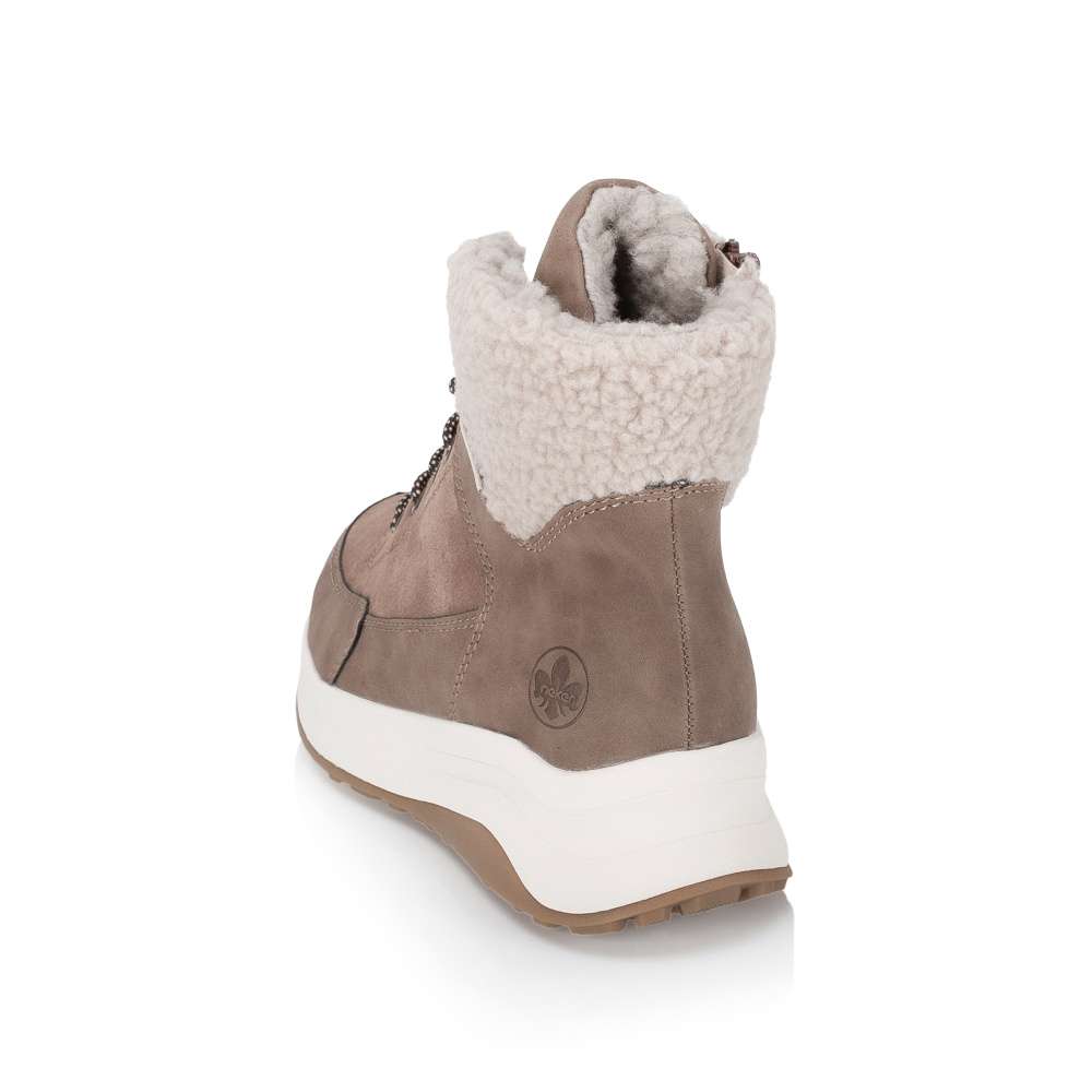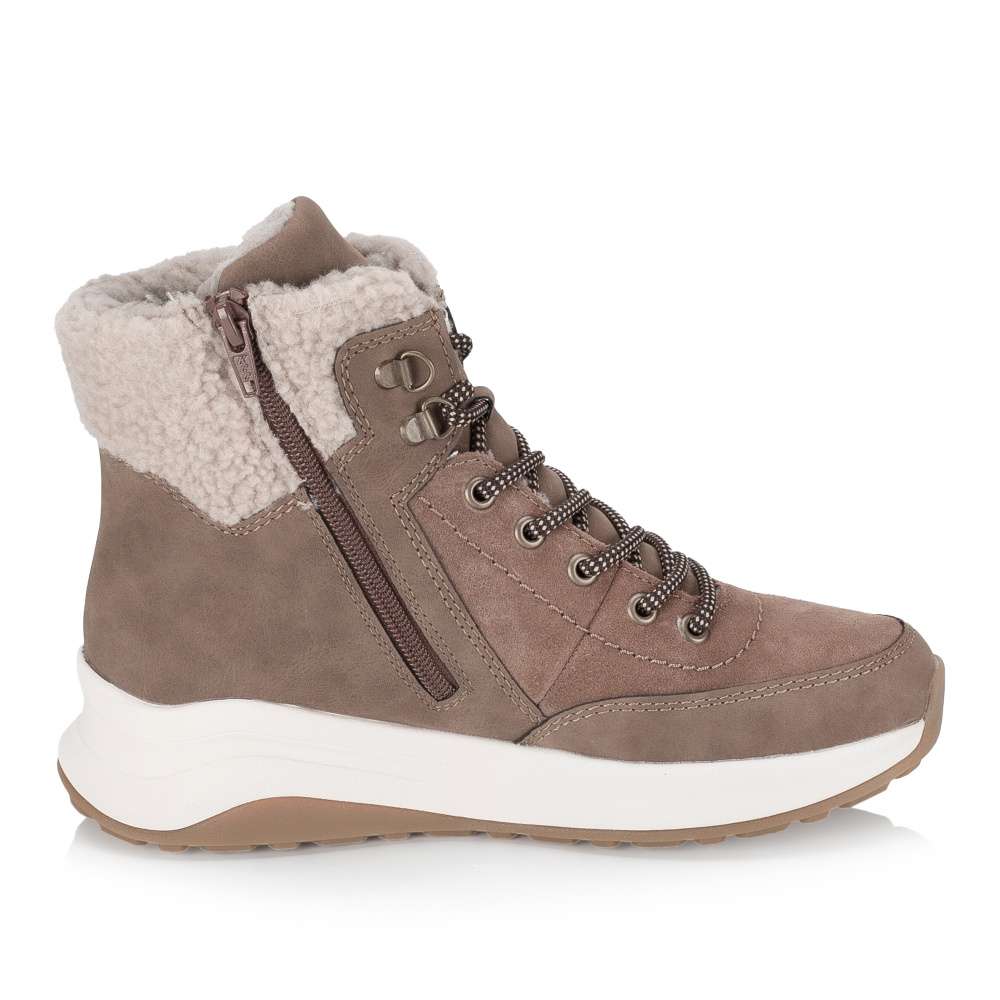 Tyto stylové kotníkové boty značky Rieker představují dokonalé spojení praktičnosti a moderního designu, díky čemuž jsou ideálním společníkem pro každý den. Hnědý svršek v zajímavé kombinaci materiálů je doplněn efektním textilním lemem horního okraje, který dodává celkovému vzhledu jemně originální nádech. Funkčnost je u tohoto modelu na prvním místě. Nepromokavá vrstva svršku spolehlivě ochrání vaše nohy před vlhkostí a nepříznivým počasím, takže se budete cítit komfortně i během sychravých podzimních či zimních dní. Praktický boční zip usnadňuje obouvání, zatímco šněrování nabízí možnost optimálního přizpůsobení boty podle individuálních potřeb vaší nohy. O pohodlí při nošení se postará měkká, vyjímatelná stélka, která se přizpůsobí tvaru chodidla a díky své pružnosti vytváří pocit lehkosti při chůzi. Příjemná hřejivá podšívka ochrání vaše nohy před chladem, takže se budete cítit příjemně i při delším pobytu venku. Celkový komfort doplňuje nárazy tlumící podešev, která zajišťuje stabilitu a pohodlný krok na různých typech povrchu. Tyto kotníkové boty jsou skvělou volbou pro ženy, které nechtějí dělat kompromisy mezi funkčností, komfortem a stylem – nabízejí vše v jednom modelu, který si zamilujete hned po prvním obutí.
