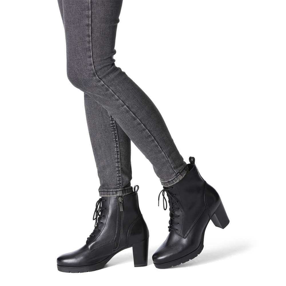 Detailní informace Elegance a pohodlí v každém kroku, tyto kotníkové boty TAMARIS jsou dokonalým spojením nadčasového designu, vysokého komfortu a ženského stylu. V elegantní černé barvě se subtilním prošitím působí sofistikovaně, a zároveň se snadno kombinují s různými outfity – od elegantních šatů a suken, přes úzké kalhoty až po ležérní denní kombinace. Funkční zip na vnitřní straně umožňuje rychlé obutí a vyzutí, zatímco šněrování nabízí možnost přesného přizpůsobení podle tvaru nohy, čímž zajistí dokonalé pohodlí při každém kroku. Vnitřní stélka Touch-It přináší měkký a pohodlný došlap, ideální pro celodenní nošení, zatímco vyšší, širší podpatek dodává postavě sebevědomý vzhled, přičemž zachovává pohodlí a rovnováhu. Tyto boty jsou vhodné nejen do práce, ale i na procházky po městě či setkání s přáteli. Kombinace nadčasového designu a praktických funkcí činí z tohoto modelu nezaměnitelný doplněk do šatníku každé moderní ženy, která chce působit stylově, sebevědomě a cítit se pohodlně.