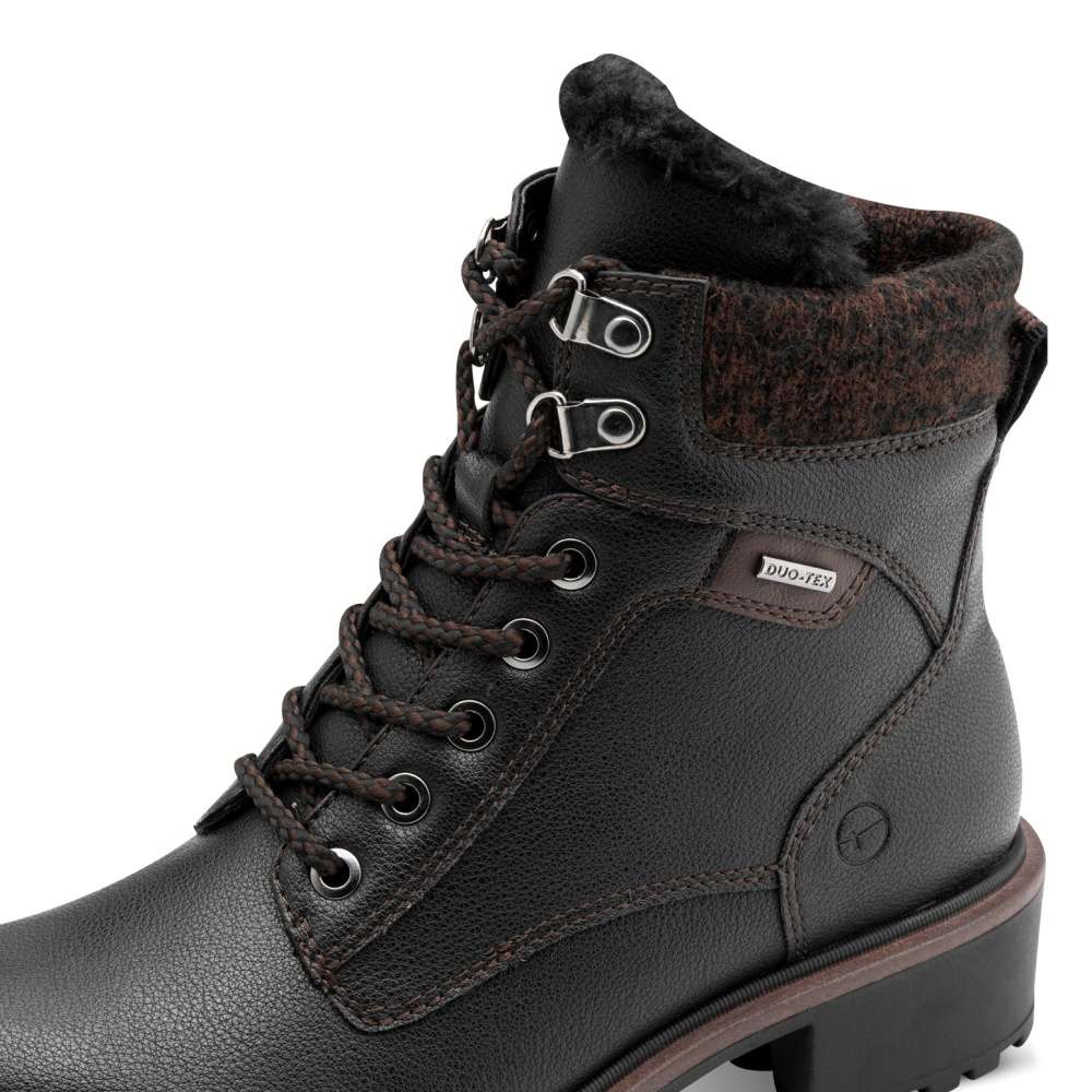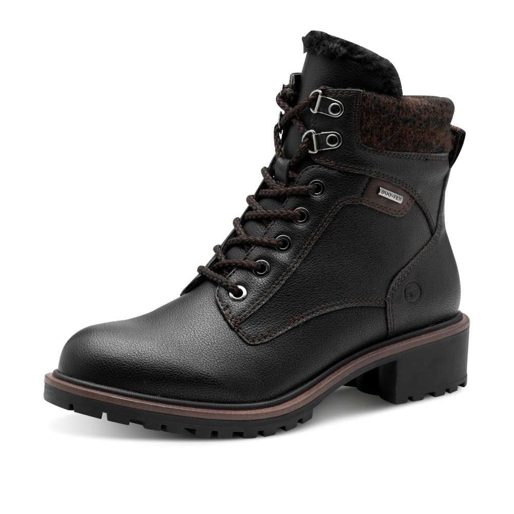 Kotníkové boty Tamaris v nadčasovém provedení jsou dokonalou kombinací pohodlí a funkčnosti, díky čemuž se stávají nepostradatelným kouskem ve vašem šatníku. Svršek bot je vyroben z kvalitního materiálu s nepromokavou membránou, která spolehlivě chrání nohy před vlhkostí, a zároveň působí stylově díky působivé kombinaci materiálů, která dodává botám moderní vzhled. Šněrování umožňuje přesné přizpůsobení tvaru nohy, zatímco praktický boční zip usnadňuje rychlé obouvání, aniž byste museli pokaždé upravovat tkaničky. Uvnitř boty se nachází hřejivé zateplení a vyjímatelná měkká stélka, která se přizpůsobí chodidlu a zajišťuje tepelnou pohodu i při dlouhém nošení během chladnějších dní. Boty jsou navíc vybaveny stabilní podešví, která poskytuje jistý krok na různých typech povrchů. Tyto kotníkové boty jsou ideální pro ženy, které hledají nadčasový styl spojený s komfortem a praktičností. Technologie: Touch-it – měkká stélka, která se dokonale přizpůsobí tvaru nohy, a díky tomu při nošení zajišťuje optimální pohodlí. DuoTex - obuv s membránou DUOtex je nepromokavá a přesto prodyšná. Díky ní jsou nohy v příjemném klimatu při dešti, ve větru i sněhu. Tato bota je vybavena vyjímatelnou stélkou. VEGAN – pro zodpovědný životní styl bez živočišných materiálů.