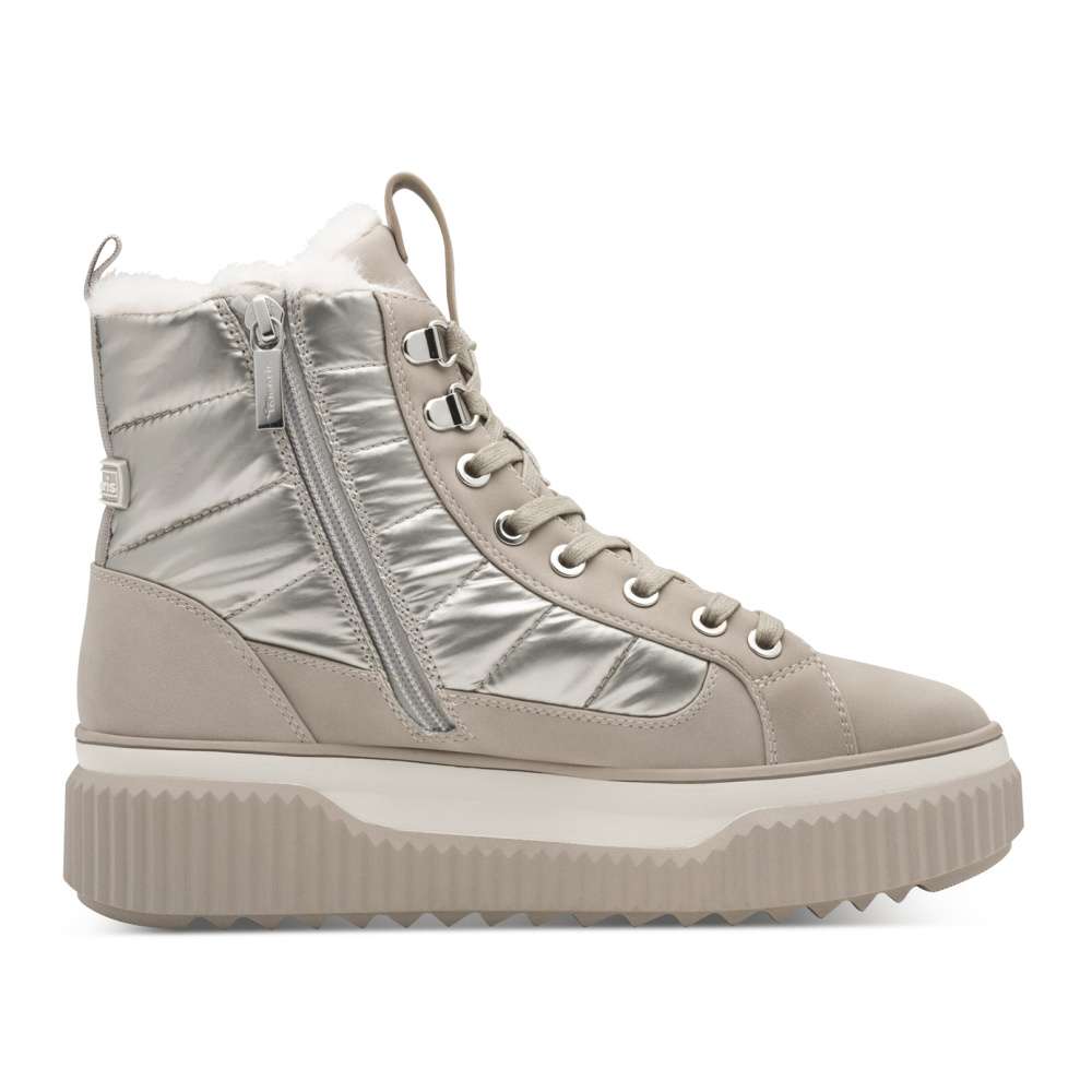 Objevte boty, které vám poskytnou více než jen základní komfort. Tyto kotníkové boty značky Tamaris spojují moderní vzhled s praktickými prvky, díky nimž se stanou vaším oblíbeným společníkem pro chladné dny. Na první pohled zaujme světlý svršek s rafinovanou kombinací materiálů a působivými odlesky, které dodávají botám originální charakter. Nápadité šněrování podtrhuje celkový design a zároveň vám umožní doladit obuv přesně podle potřeb vaší nohy. Pro rychlé a pohodlné nazouvání je tu navíc praktický boční zip – ideální detail pro ženy, které oceňují funkčnost i v každodenním shonu. Vaše nohy si zaslouží pohodlí, a proto je tento model vybavený měkkou vyjímatelnou stélkou, která zajistí příjemný pocit i při delším nošení. Vyšší stabilní podešev v trendy provedení nejen podtrhuje celkový vzhled, ale také vám dodá jistotu při každém kroku. Protože styl by neměl ustupovat ani nepřízni počasí, Tamaris vsadil na funkční prvky, boty jsou opatřeny nepromokavou membránou a hřejivým zateplením, takže vás spolehlivě ochrání před chladem i vlhkem. Ať už vyrazíte do města, do práce, nebo na zimní procházku, s tímto modelem budete vždy vypadat stylově – a hlavně se budete cítit skvěle. Technologie: Touch-it – měkká stélka, která se dokonale přizpůsobí tvaru nohy, a díky tomu při nošení zajišťuje optimální pohodlí. DuoTex - obuv s membránou DUOtex je nepromokavá a přesto prodyšná. Díky ní jsou nohy v příjemném klimatu při dešti, ve větru i sněhu. Tato bota je vybavena vyjímatelnou stélkou.