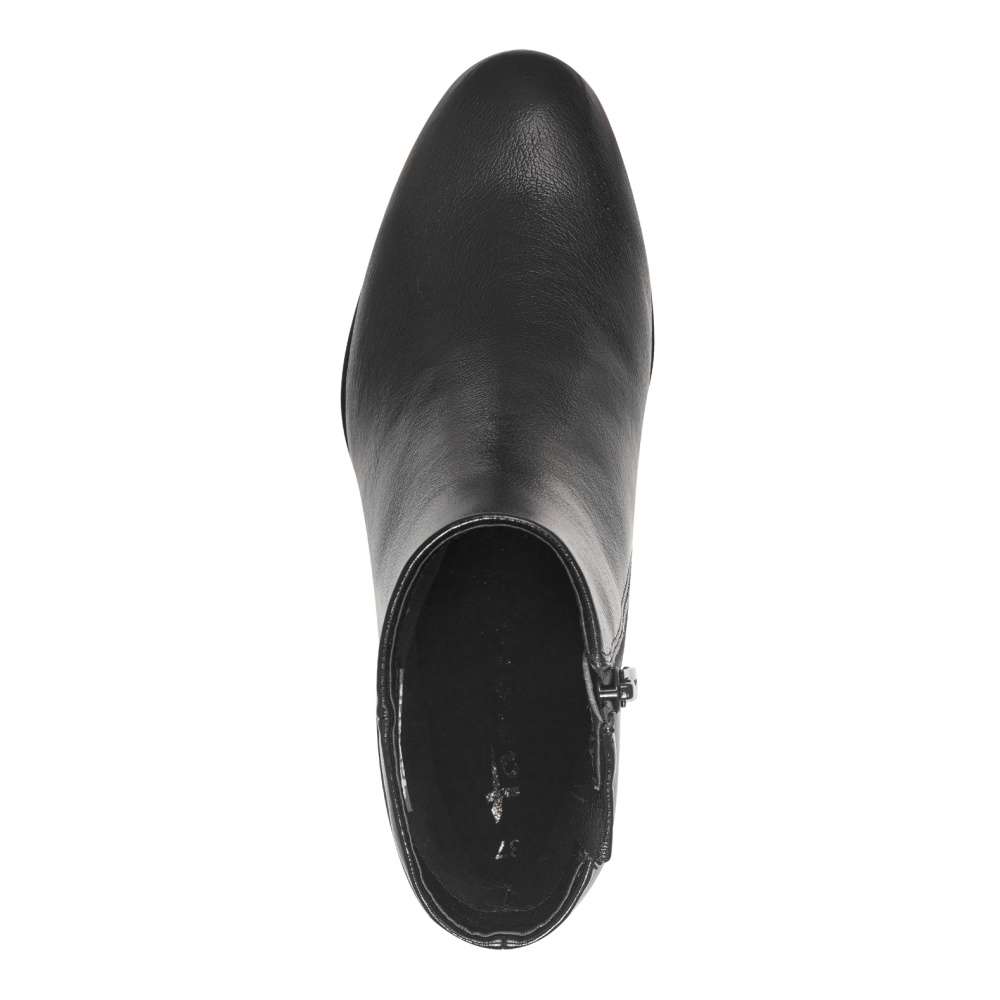 Nadčasový model od značky TAMARIS s hladkým černým svrškem a širokým podpatkem doplní Váš šatník ženským půvabem. Pro snadné obutí je zde použit funkční zip na vnitřní straně. S paměťovou stélkou Touch It se můžete těšit na pohodlnou a komfortní chůzi po celý den nošení. K úzkým kalhotám nebo sukni budou dokonalým doplňkem.