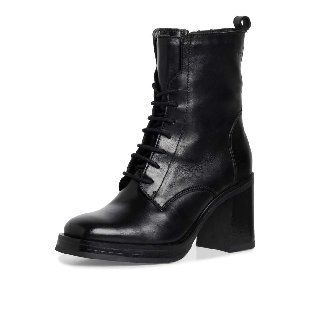 Detailní informace Dámská obuv s vysokým podpatkem a jemným prošitím značky TAMARIS. Svrchní materiál je vyroben z pravé přírodní usně v černé barvě. Pro ještě snadnější nazutí je zde použit funkční zip na vnitřní straně a tkaničkami na šněrování si je můžete upravit přesně podle Vašich představ. S měkkou stélkou Touch-it a s hrubou podešví se můžete těšit na pohodlnou a komfortní chůzi po celý den nošení. S těmito botami budete vypadat sebevědomě a stylově zároveň.