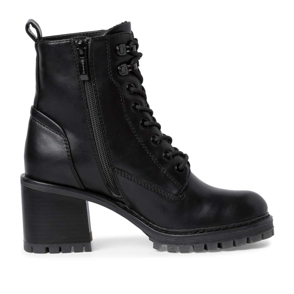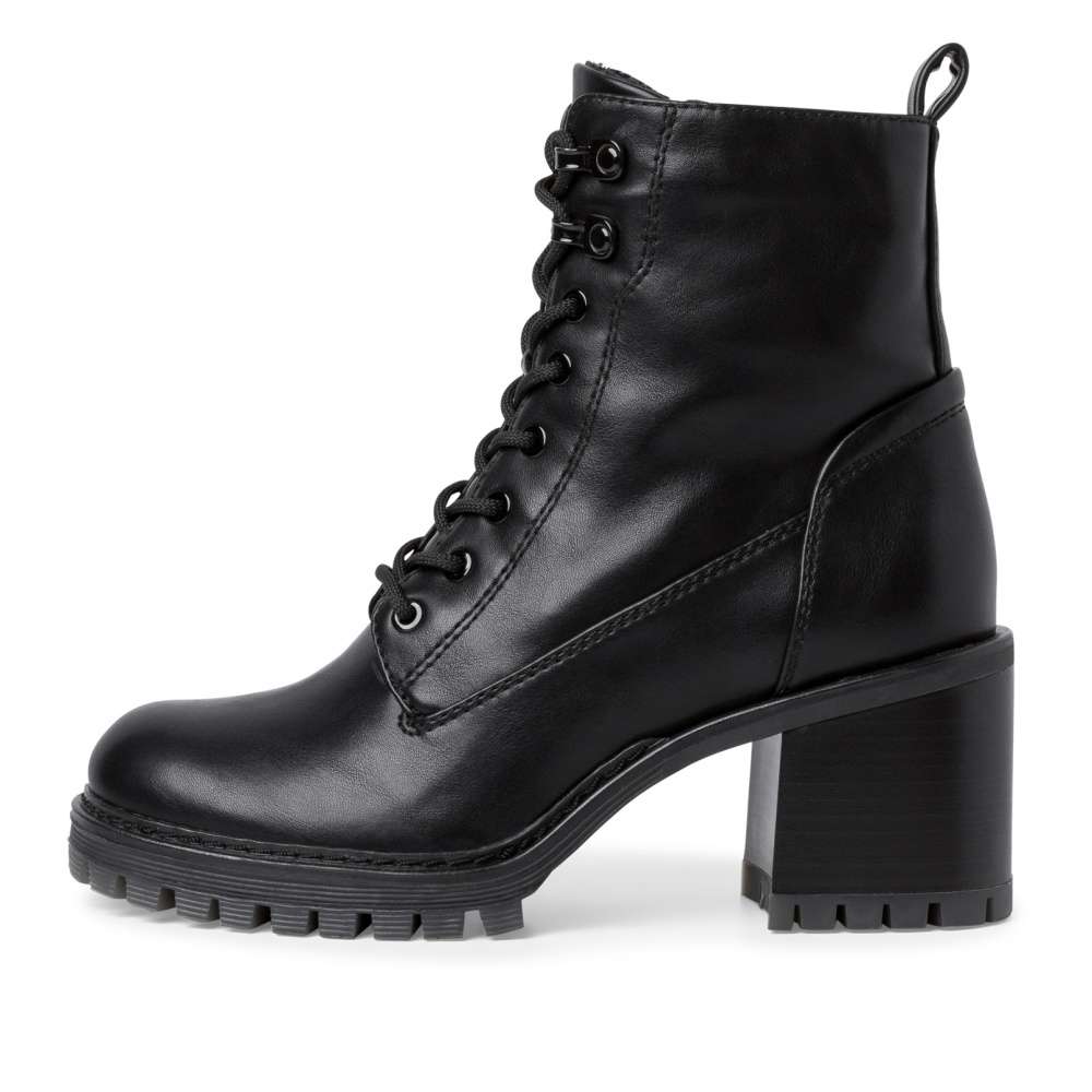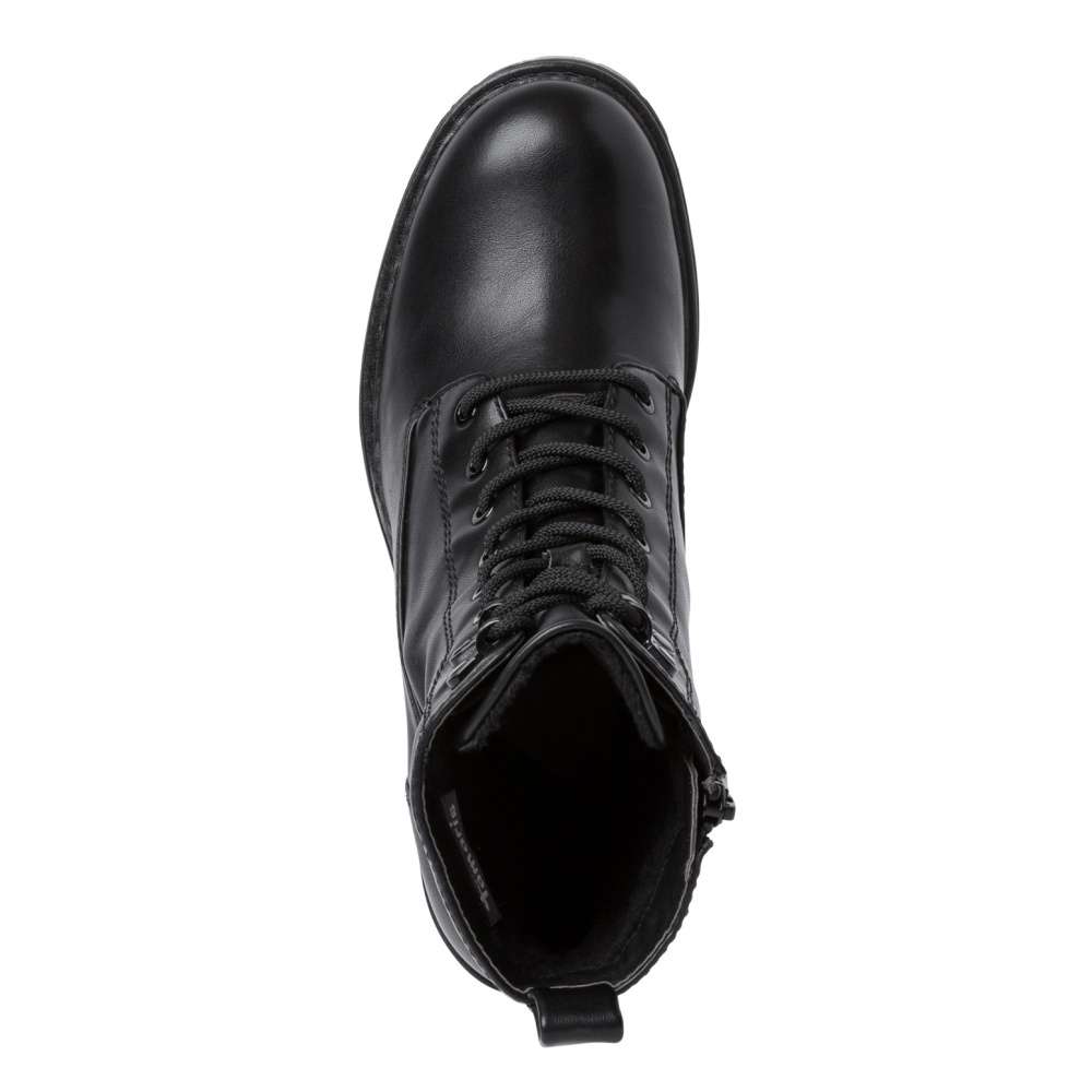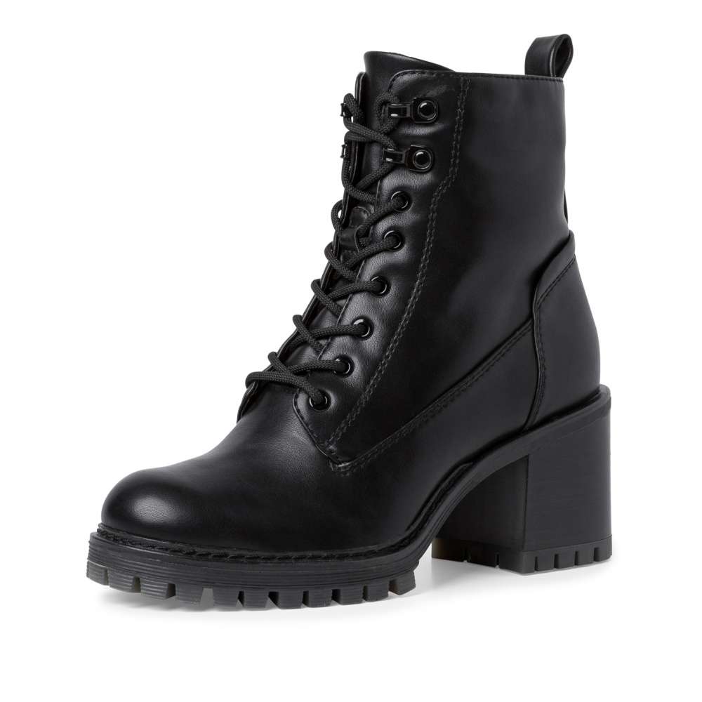 Moderní dámská obuv TAMARIS s vyšším širokým podpatkem a hladkým svrškem v černé barvě. Pro ještě snadnější nazutí je zde použit funkční zip na vnitřní straně a tkaničkami na šněrování si je můžete upravit přesně podle Vašich představ. S měkkou stélkou Touch-it a s hrubou traktorovou podešví se můžete těšit na pohodlnou a komfortní chůzi po celý den nošení. Tyto boty krásně prodlouží nohy, a navíc Vám dodají sebevědomí.