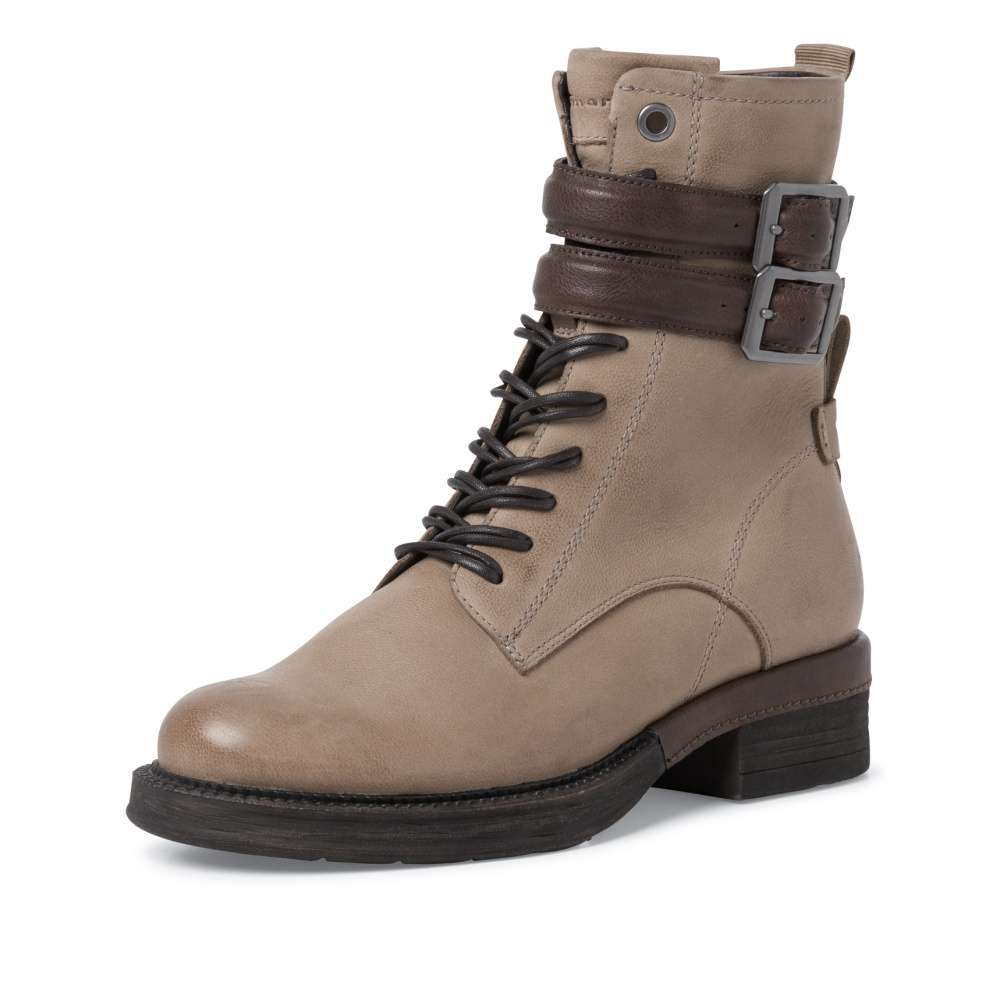 Detailní informace Kotníková dámská obuv od značky TAMARIS se dvěma přezkami v horní části a jemným prošitím. Svrchní materiál je vyroben kombinací pravé přírodní usně a kvalitní syntetiky. Pro ještě snadnější nazutí je zde použit funkční zip na vnitřní straně a tkaničkami na šněrování si je můžete upravit přesně podle Vašich představ. S měkkou stélkou Touch-it a s nízkým širokým podpatkem se můžete těšit na pohodlnou a komfortní chůzi po celý den nošení. Můžete v nich vyrazit na cestu do práce nebo na kávu s přáteli.