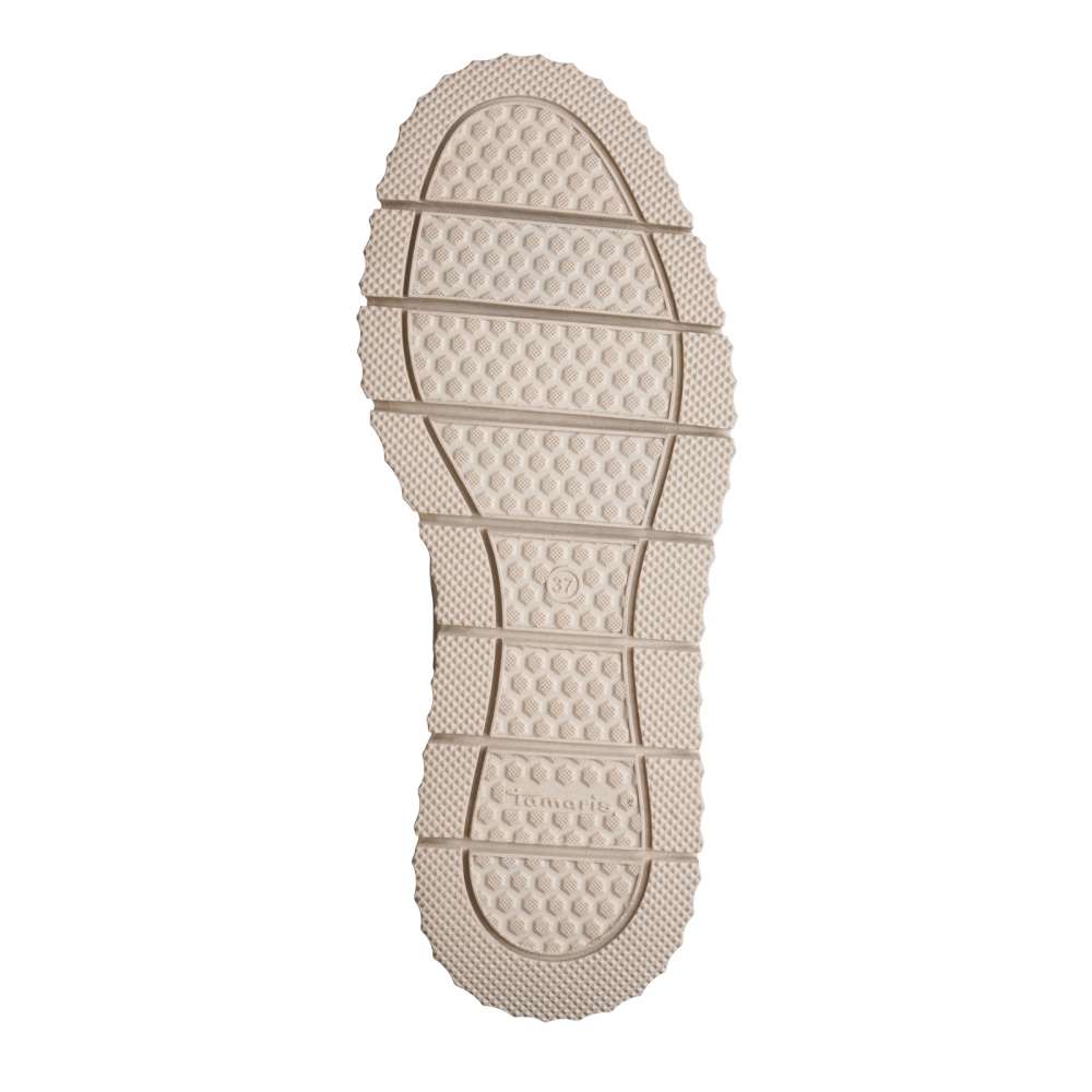 Jemný půvab kotníkových bot Tamaris v decentním provedení zaručí, že se stanou vaším spolehlivým společníkem pro každý den. Světlý svršek působí univerzálně a dekorují ho jemné linie prošívání podtrhujíci vkusný charakter celého modelu. Praktické šněrování s efektními tkaničkami v kombinaci s bočním zipem umožňuje snadné obouvání a dokonalé přizpůsobení tvaru nohy. O váš komfort se postará vyjímatelná stélka, která zajistí pohodlí i při delším nošení a vyšší stabilní podešev poskytuje nejen potřebnou oporu a jistotu při chůzi, ale zároveň dodává modelu moderní prvek. Tyto boty jsou skvělou volbou pro ženy, které hledají kombinaci stylu, pohodlí a nadčasového designu. Technologie: Tato bota je vybavena vyjímatelnou stélkou.