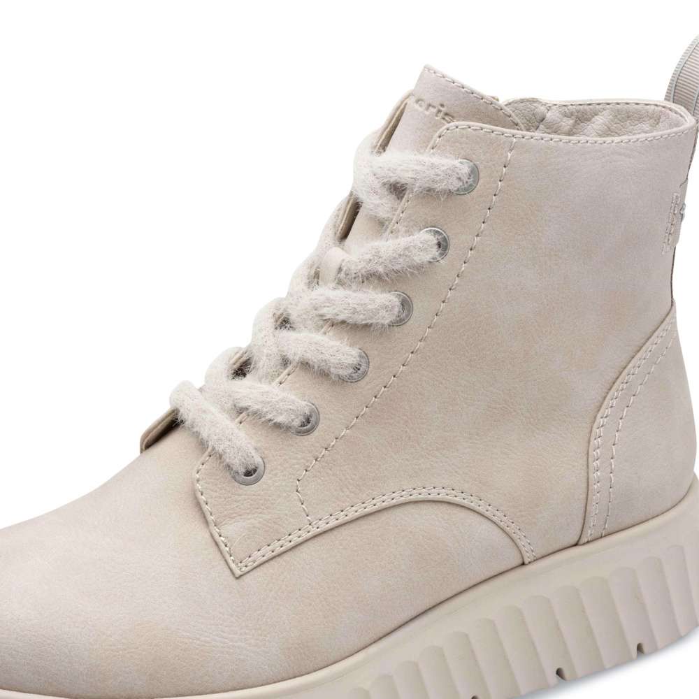 Detailní informace Jemný půvab kotníkových bot Tamaris v decentním provedení zaručí, že se stanou vaším spolehlivým společníkem pro každý den. Světlý svršek působí univerzálně a dekorují ho jemné linie prošívání podtrhujíci vkusný charakter celého modelu. Praktické šněrování s efektními tkaničkami v kombinaci s bočním zipem umožňuje snadné obouvání a dokonalé přizpůsobení tvaru nohy. O váš komfort se postará vyjímatelná stélka, která zajistí pohodlí i při delším nošení a vyšší stabilní podešev poskytuje nejen potřebnou oporu a jistotu při chůzi, ale zároveň dodává modelu moderní prvek. Tyto boty jsou skvělou volbou pro ženy, které hledají kombinaci stylu, pohodlí a nadčasového designu.