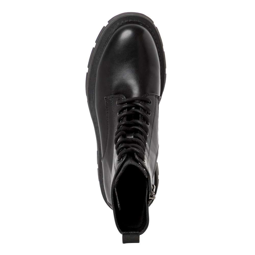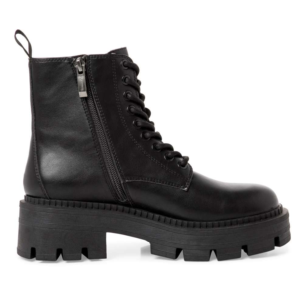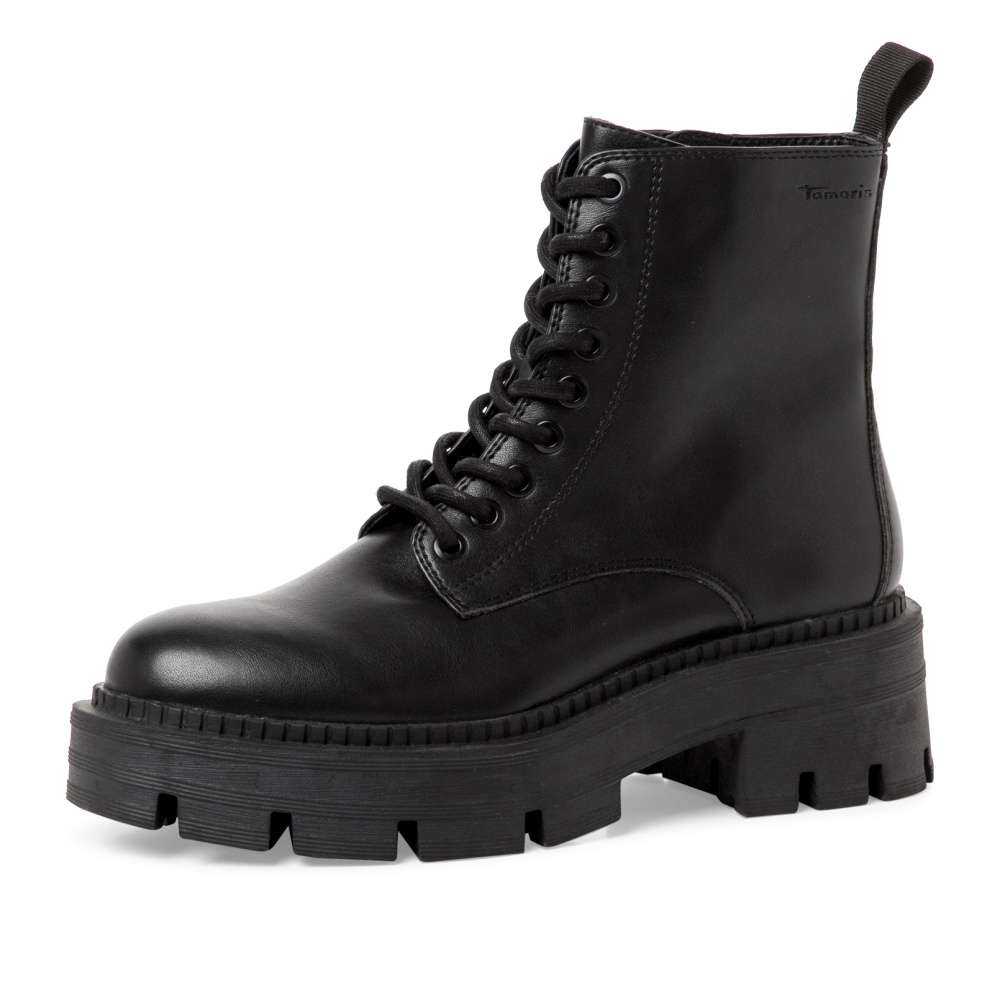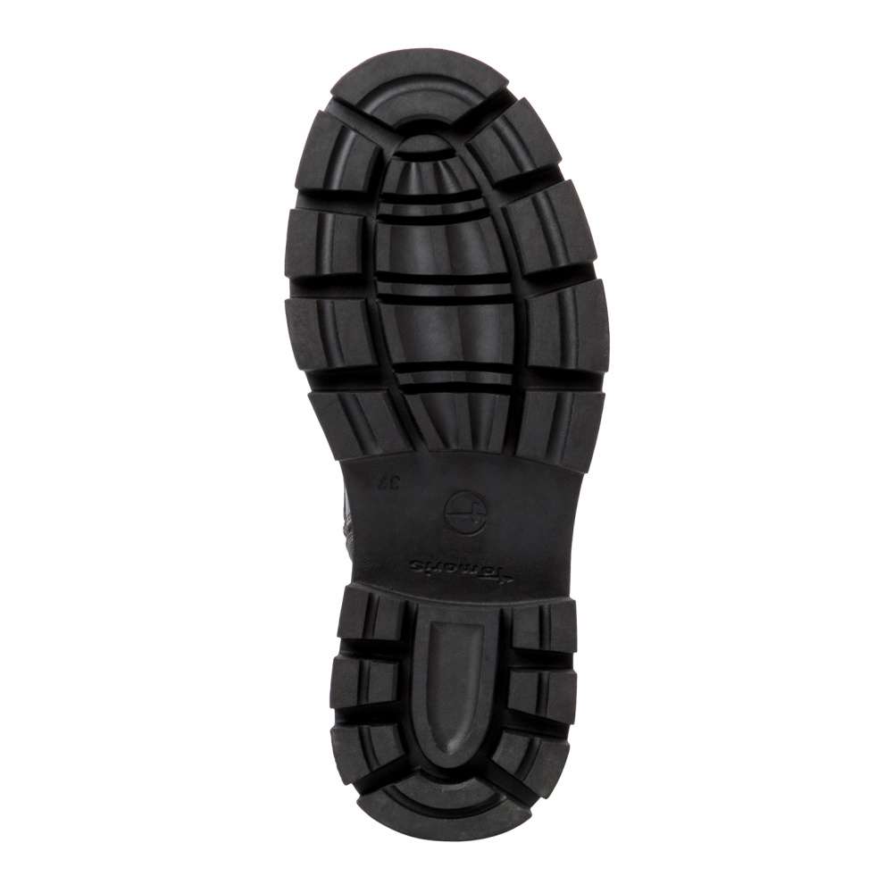 Dámská obuv od značky TAMARIS s designovou podešví a traktorovým vzorkem zaujme každou ženu co má ráda styl a módu. Funkční zip na vnitřní straně skvěle usnadní obutí a tkaničkami na šněrování si boty můžete upravit přesně podle Vašich představ. S měkkou stélkou a hrubou podešví se můžete těšit na pohodlnou a komfortní chůzi po celý den nošení. S touto unikátní obuví v černé barvě zazáříte kamkoliv si jen vyrazíte.