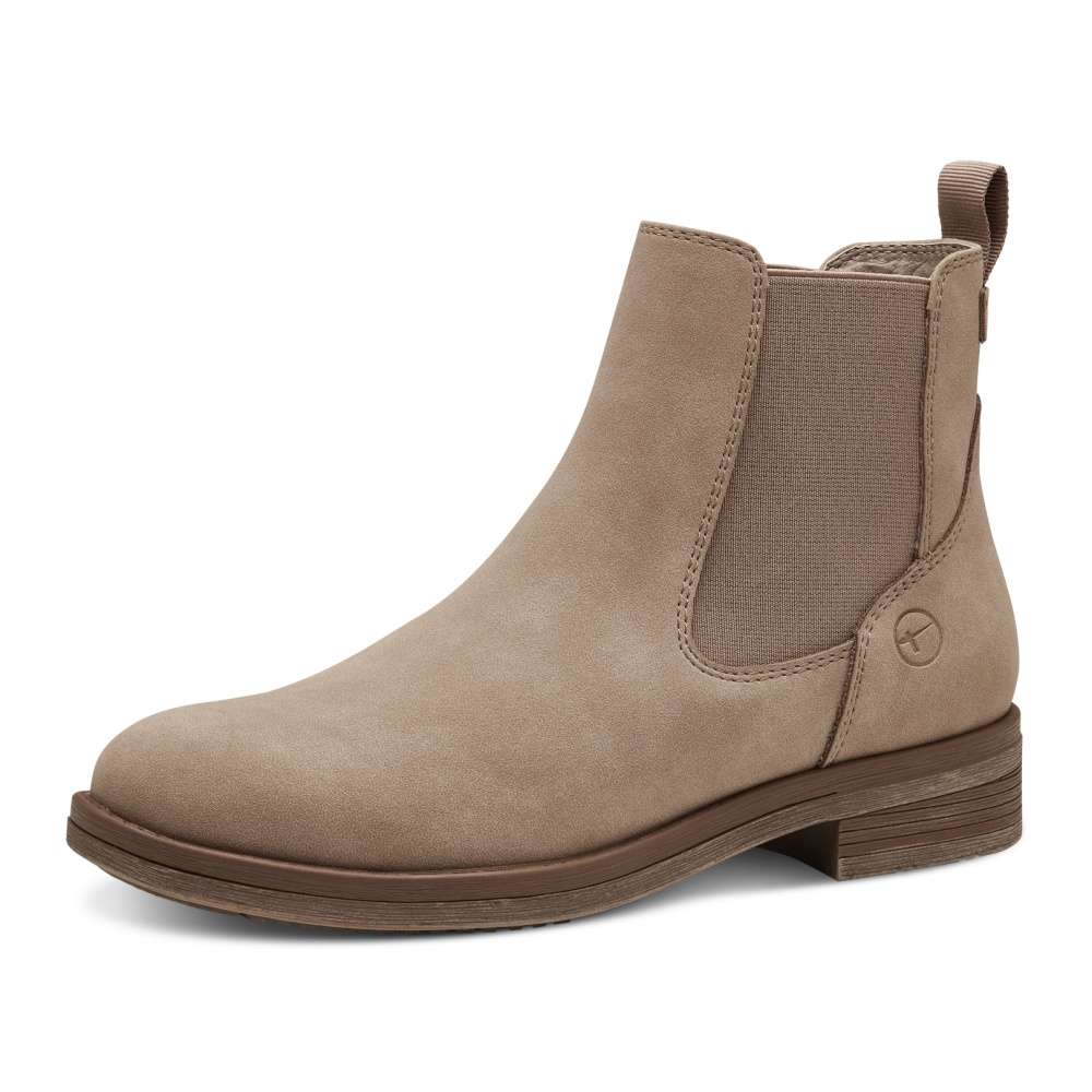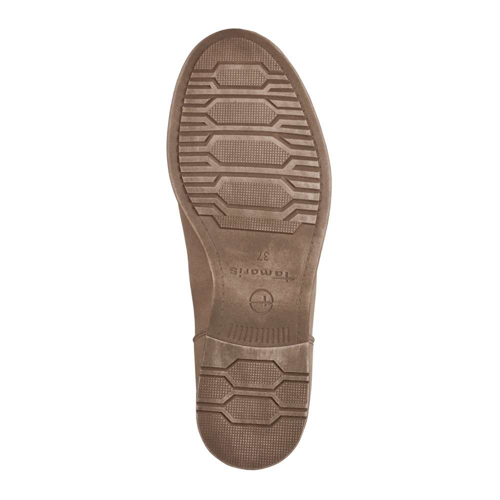 Klasická kotníková obuv od značky TAMARIS s kulatou špičkou a decentním obšitím. K obouvání zde poslouží pružné gumky po stranách a zadní poutko u horního okraje. S paměťovou stélkou Touch It a podešví s širokým podpatkem se můžete těšit na pohodlnou a komfortní chůzi po celý den nošení. Nadčasový model, se kterým můžete snadno sladit jakýkoliv outfit z Vaší skříně.