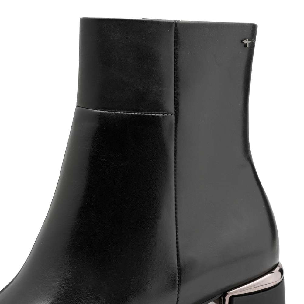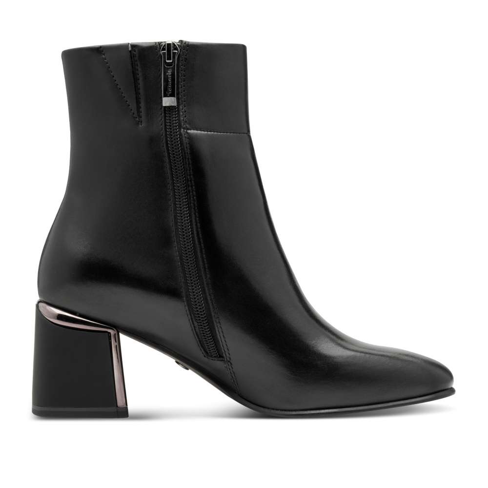 Detailní informace Půvabná dámská obuv Tamaris na širším podpatku v působivém provedení představuje ideální kombinaci komfortu a módního stylu. Černý kožený svršek dodává botě sofistikovaný vzhled a díky čistým liniím působí nadčasově, takže se snadno kombinuje s různými outfity. Praktické řešení obouvání zajišťuje boční zip, který umožňuje rychlé a pohodlné nazutí. Vnitřní měkká stélka, přizpůsobivá tvaru chodidla, zajišťuje maximální komfort při každém kroku a eliminuje pocit únavy nohou i při delším nošení. Široký podpatek nejen zvýrazňuje ženský půvab, ale poskytuje také stabilitu a jistotu při chůzi svou protiskluzovou úpravou. Díky svému nadčasovému designu se tyto kotníky snadno začlení do jakéhokoliv šatníku a stanou se spolehlivým doplňkem, který vás bude provázet při různých příležitostech – ať už do práce, na večeři s přáteli, do kina nebo na nákupy.