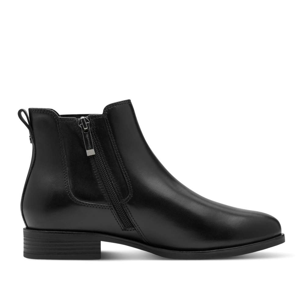 Tyto kotníkové boty Tamaris představují ideální spojení nadčasové elegance a vysokého komfortu. Černý kožený svršek působí sofistikovaně a zároveň se snadno kombinuje s různými styly oblečení. Praktický boční zip výrazně usnadňuje obouvání, takže si boty pohodlně nazujete během okamžiku a pružná boční část vytvoří dokonalou úpravu dle tvaru nohy. O celodenní pohodlí se postará měkká stélka, která se dokonale přizpůsobí tvaru chodidla a poskytuje příjemný došlap i při delší chůzi. Stabilní podešev s protiskluzovou úpravou zajišťuje jistotu na různých typech povrchů. Tento model je díky svému nadčasovému designu a praktickým vlastnostem ideální volbou pro ženy, které chtějí spojit styl, pohodlí a funkčnost v jednom páru bot. Technologie: Touch-it – měkká stélka, která se dokonale přizpůsobí tvaru nohy, a díky tomu při nošení zajišťuje optimální pohodlí. ANTISLIDE – obuv s patentovaným protiskluzovým prvkem v podešvi, který výrazným způsobem snižuje riziko uklouznutí na kluzkém povrchu.