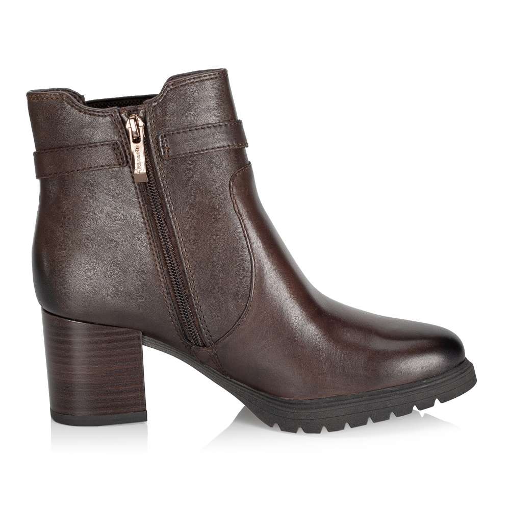 Nádherné kotníkové boty značky TAMARIS, to prostě musíte mít. Jednoduchý hladký svršek je zdoben prošíváním podél pružné části botky a také velmi decentním páskem lemující Váš kotník se značkou TAMARIS na zapínání. Funkční zip z vnitřní strany Vám bude jistě dobrým pomocníkem pro snadné obutí. S paměťovou stélkou TOUCH-IT a podešví s širokým a 6,5cm vysokým podpatkem se můžete těšit na pohodlnou a komfortní chůzi po celý den nošení. Navíc je podpatek vybaven dalšími prvky a těmi jsou ANTISLIDE jež zabraňuje podklouznutí a také k ochraně Vaší páteře a kloubů je zde ANTISHOKK. Nadčasový model, se kterým můžete snadno sladit jakýkoliv outfit z Vaší skříně anebo k nim můžete také u nás vybrat svou novou kabelku. Technologie: Touch-it – měkká stélka, která se dokonale přizpůsobí tvaru nohy, a díky tomu při nošení zajišťuje optimální pohodlí. ANTISHOKK – speciální odpružující prvek v podpatku, který tlumí nárazy a otřesy způsobené chůzí o cca 50 % a tím šetří páteř, meziobratlové ploténky a klouby. Dlouhodobě tedy ulevuje celé partii zad. Díky tomu můžete nosit své oblíbené boty na vysokých podpatcích po celý den i v kanceláři, aniž by Vás bolely nohy. ANTISLIDE – obuv s patentovaným protiskluzovým prvkem v podpatku, který výrazným způsobem snižuje riziko uklouznutí na kluzkém povrchu.