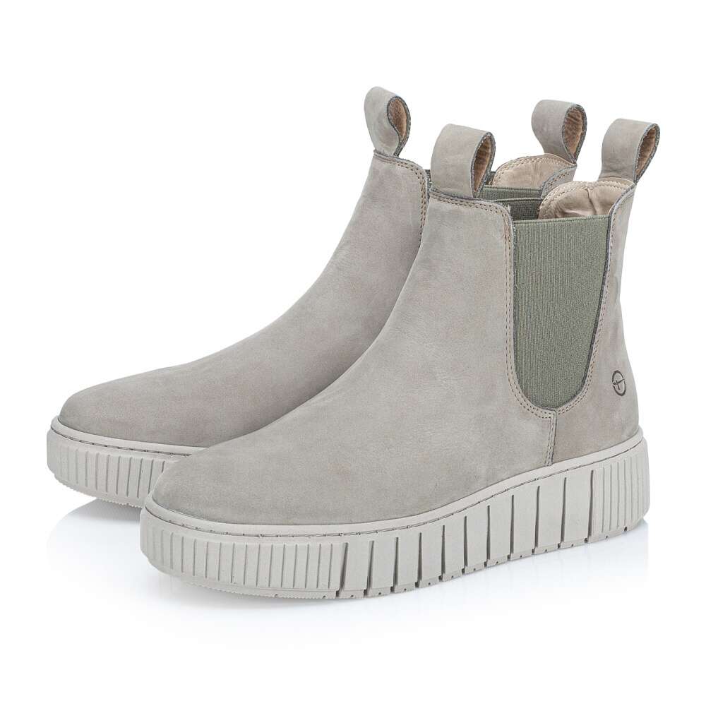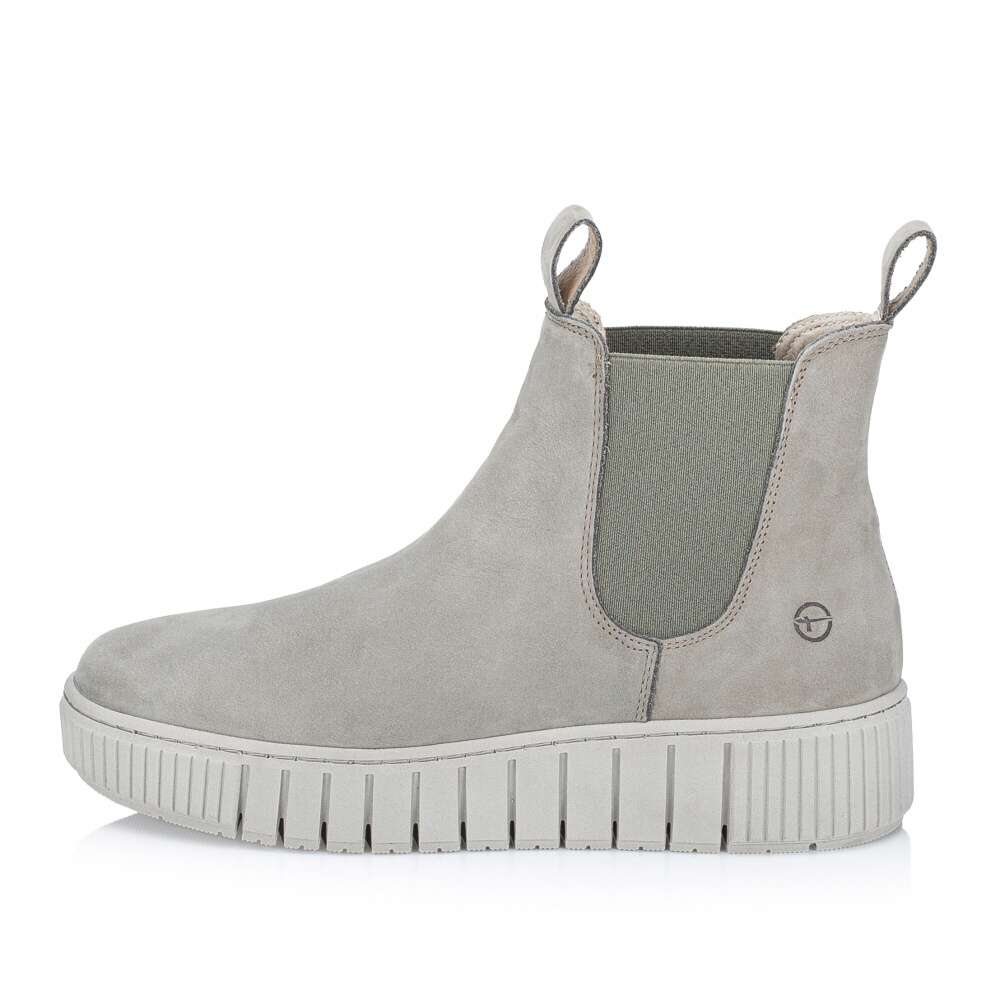 Kožené kotníkové boty od značky Tamaris jsou nezbytným prvkem v každé kolekci obuvi. Jejich světlá barva přináší moderní a osvěžující vzhled. Pomocí poutka a elastických pásků po bočních stranách do boty lehce vklouznete. Měkká stélka a kvalitní podešev zajistí maximální komfort na každém kroku. Tímto pohodlným kouskem skvěle doplníte Váš outfit během všedních dnů. Technologie: COMFORT Line – boty mají širší střih pro poskytnutí dostatečného prostoru noze a zároveň mají vyjímatelnou stélku, která je tvarovaná a je oporou chodidla při chůzi. Tato bota je vybavena vyjímatelnou stélkou.