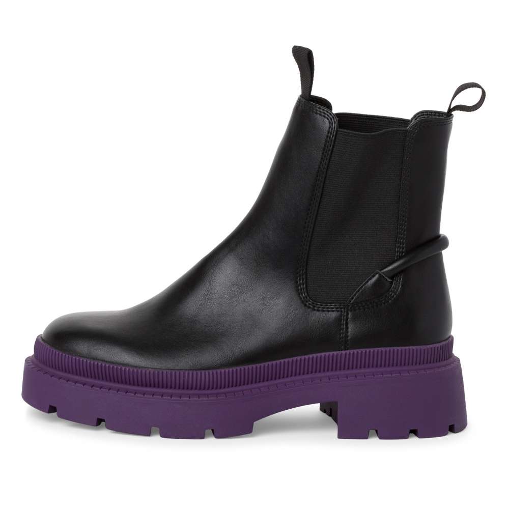 Stylový dámský kotník značky TAMARIS na vyšší podešvi má svršek z hladkého materiálu v černé barvě. Patní část je dozdobena decentním páskem, který dodává ten správný šmrnc. Určitě oceníte, že k pohodlnému obutí slouží lehce pružná všitá guma z obou stran a poutka u horního okraje. Měkká stélka Vám zaručí pohodlí po celý den. Tento lehce kombinovatelný kousek doladí outfit každé ženy. Technologie: Touch-it – měkká stélka, která se dokonale přizpůsobí tvaru nohy, a díky tomu při nošení zajišťuje optimální pohodlí.