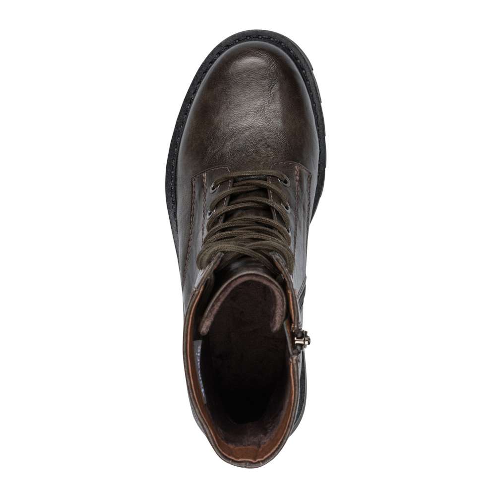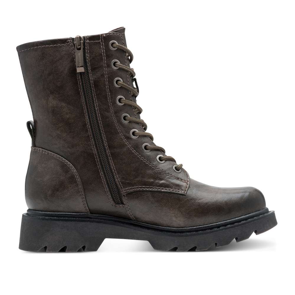Detailní informace Kotníkové boty značky Tamaris s působivým a precizně zpracovaným svrškem se stanou nezbytným kouskem ve Vašem šatníku. Svršek je doplněn jemným šněrováním a praktickým vnitřním zipem, který zajišťuje snadné a rychlé obutí, přičemž šněrování umožňuje optimální přizpůsobení tvaru nohy. Uvnitř boty naleznete měkkou stélku, která poskytuje pohodlí po celý den a zajišťuje pocit lehkosti při každém kroku. Stabilní podešev s vyšším vzorem nejen dodává botám moderní vzhled, ale zajišťuje bezpečný a stabilní krok na různých typech povrchů. Tento model kotníkových bot Tamaris dokonale doladí Vaše každodenní outfity, ať už se jedná o volnočasové aktivity, pracovní dny nebo večerní procházky městem.