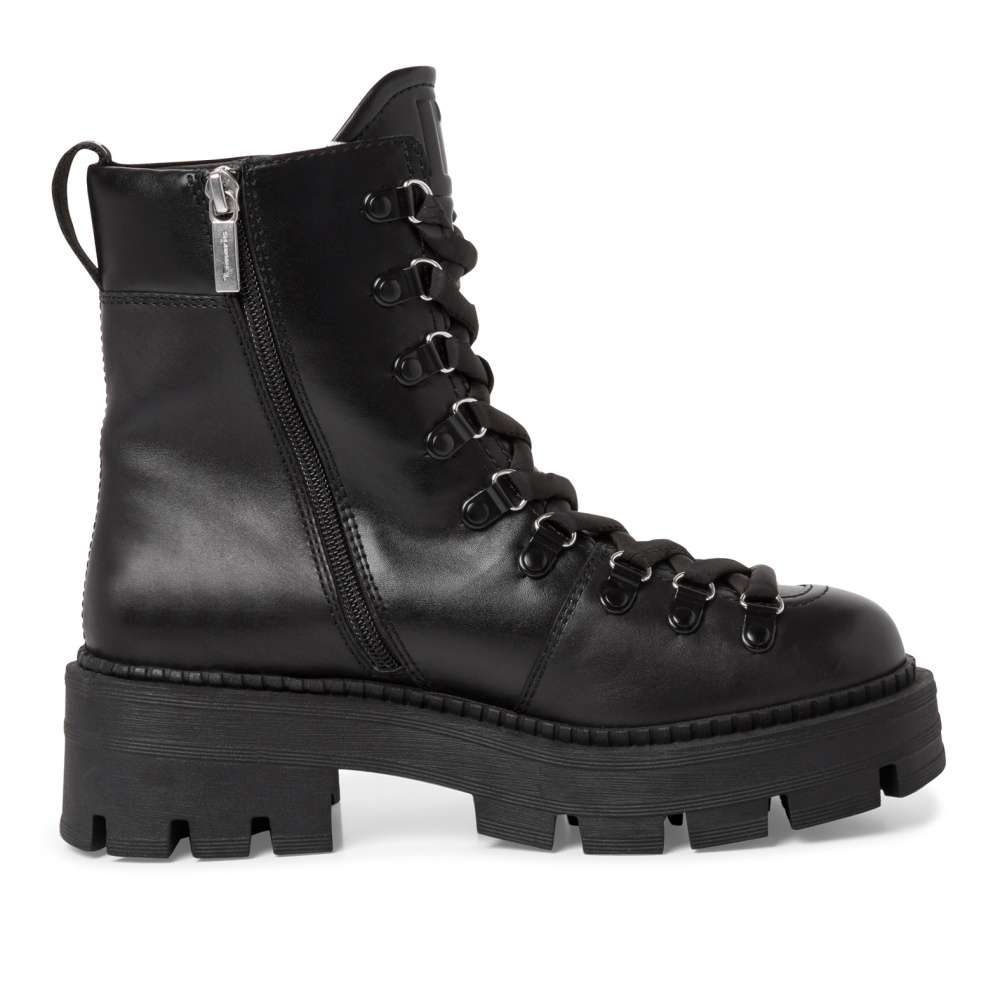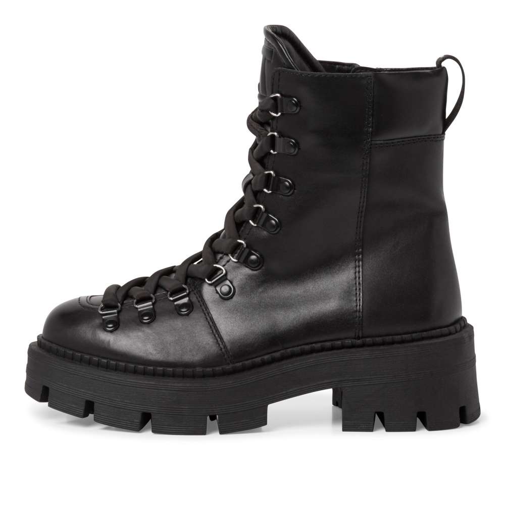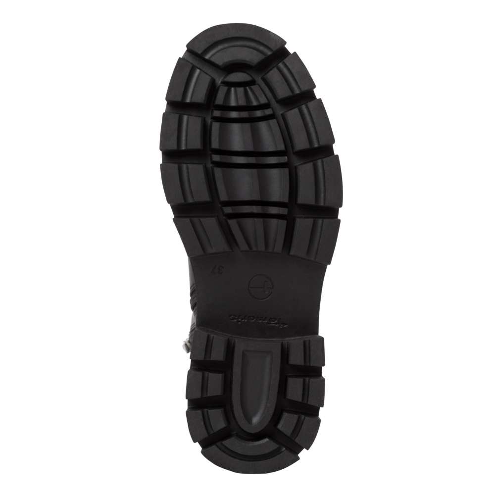 Tuto dámskou kotníkovou obuv od značky Tamaris oceníte nejen po vzhledové stránce, ale i po stránce komfortu. Černý kožený svršek snadno sladíte s každým outfitem a díky hladkému povrchu se snadno udržuje. Pro obutí slouží funkční zip na vnitřní straně a díky tkaničkám si obuv přizpůsobíte podle sebe. Podpatek vysoký 5,5 cm ocení ty dámy, kterým by se hodil nějaký centimetr navíc. Díky stélce z měkké paměťové pěny jsou botky vhodné i na každodenní nošení. Díky zateplení Vás nezaskočí ani chladné počasí. Ať už vyrazíte na koncert nebo jen do práce, budete vypadat stylově.