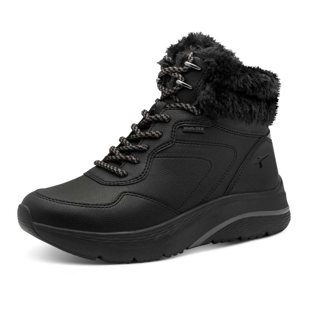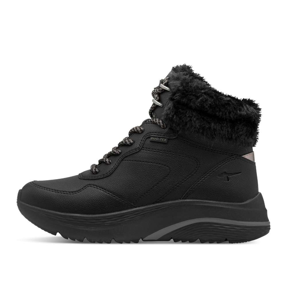 Tyto kotníkové boty od značky Tamaris jsou nezbytným doplňkem pro ženy preferující pohodlí, funkčnost a moderní design. S černým svrškem a nepromokavou membránou vám poskytnou maximální komfort a ochranu, ať už jste ve městě nebo v přírodě. Módní vzhled podtrhuje horní lem v působivém textilním provedení, které navíc přináší hřejivý a pohodlný dojem. Pro snadné nazutí jsou boty vybaveny praktickým zipem na vnitřní straně, zatímco šněrování umožňuje optimální přizpůsobení tvaru nohy a maximální pohodlí při každém kroku. Vyšší podešev s propracovaným vzhledem nejenže působí moderně, ale také zajišťuje stabilitu při celodenním nošení. Uvnitř bot najdete stélku s izolačními vlastnostmi a zateplení, které dodává komfort i v chladnějším počasí. Díky kombinaci funkčnosti, stylu a pohodlí se tyto boty Tamaris stávají nezbytným doplňkem pro moderní ženu, která chce vypadat dobře a zároveň mít nohy v suchu a pohodlí. Technologie: DuoTex - obuv s membránou DUOtex je nepromokavá a přesto prodyšná. Díky ní jsou nohy v příjemném klimatu při dešti, ve větru i sněhu. Thermo stélka – ze spodní strany je hliníková fólie, která poskytuje výborné termoizolační vlastnosti a chrání tak chodidlo před chladem.