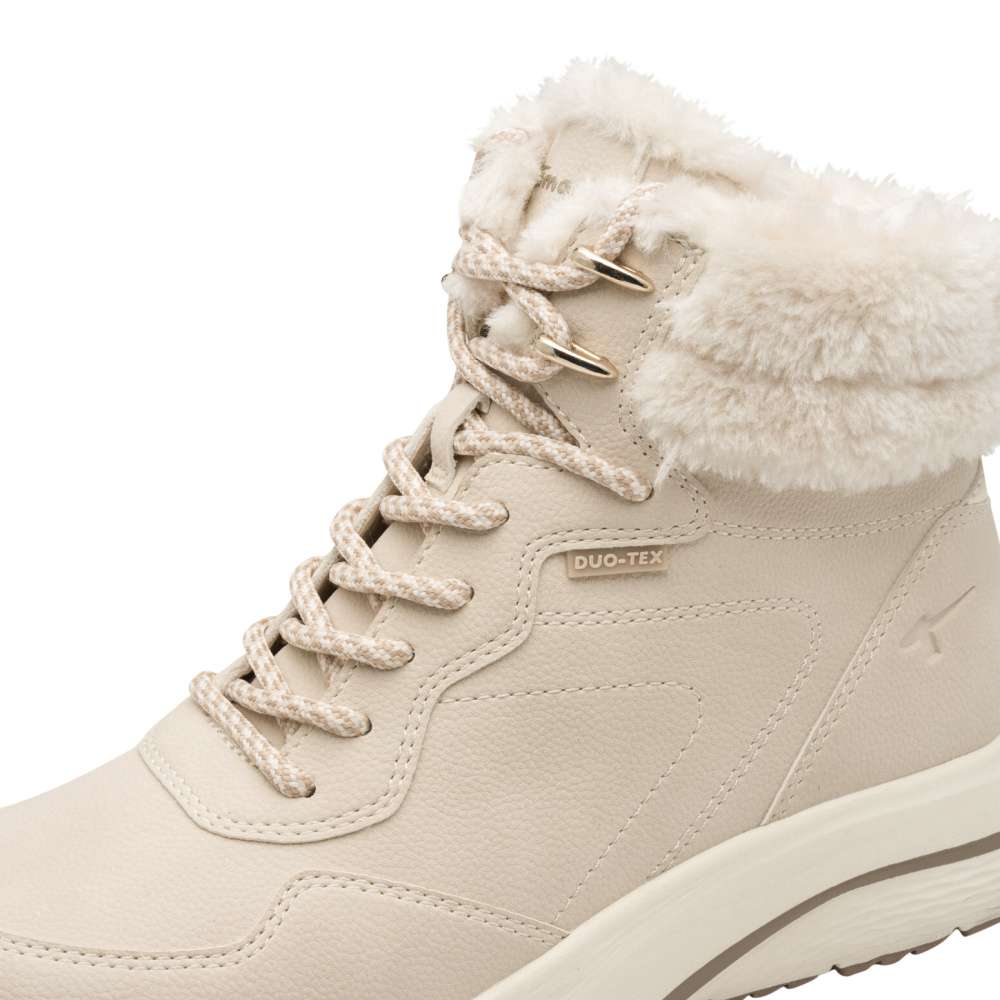 Tyto kotníkové boty od značky Tamaris jsou nezbytným doplňkem pro ženy preferující pohodlí, funkčnost a moderní design. S béžovým svrškem a nepromokavou membránou vám poskytnou maximální komfort a ochranu, ať už jste ve městě nebo v přírodě. Módní vzhled podtrhuje horní lem v působivém textilním provedení, které navíc přináší hřejivý a pohodlný dojem. Pro snadné nazutí jsou boty vybaveny praktickým zipem na vnitřní straně, zatímco šněrování umožňuje optimální přizpůsobení tvaru nohy a maximální pohodlí při každém kroku. Vyšší podešev s propracovaným vzhledem nejenže působí moderně, ale také zajišťuje stabilitu při celodenním nošení. Uvnitř bot najdete stélku s izolačními vlastnostmi a zateplení, které dodává komfort i v chladnějším počasí. Díky kombinaci funkčnosti, stylu a pohodlí se tyto boty Tamaris stávají nezbytným doplňkem pro moderní ženu, která chce vypadat dobře a zároveň mít nohy v suchu a pohodlí. Technologie: DuoTex - obuv s membránou DUOtex je nepromokavá a přesto prodyšná. Díky ní jsou nohy v příjemném klimatu při dešti, ve větru i sněhu. Thermo stélka – ze spodní strany je hliníková fólie, která poskytuje výborné termoizolační vlastnosti a chrání tak chodidlo před chladem.