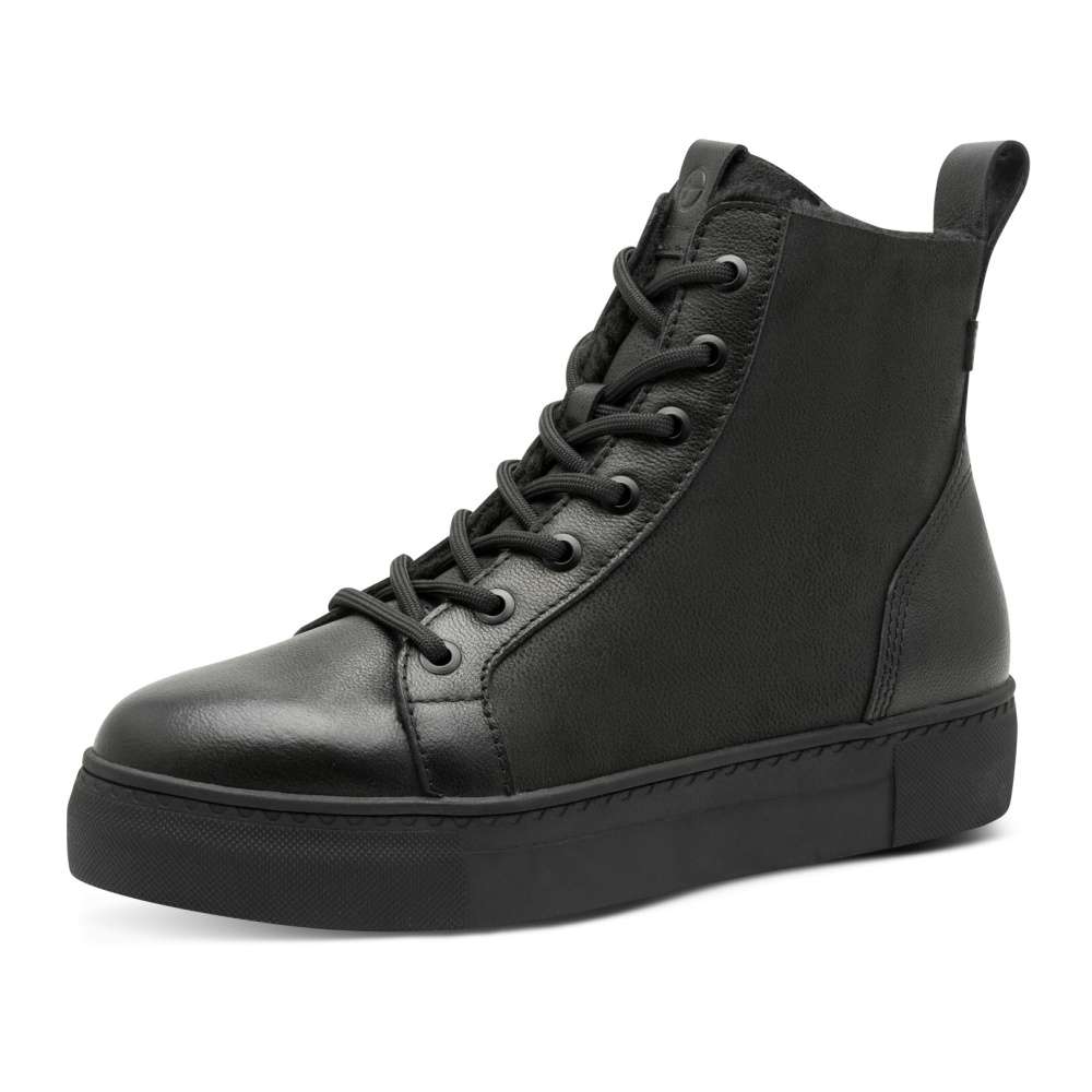 Kotníkové boty značky Tamaris představují ideální spojení módního stylu a pohodlí, které oceníte každý den. Jejich černý kožený svršek působí nadčasově, zatímco aplikace na zadní části a jemný textilní lem kolem horního okraje dodávají modelu originální a atraktivní vzhled. Tyto detaily podtrhují osobitost obuvi a činí z nich kousek, který dokonale doplní váš outfit. Pro snadné obouvání jsou boty vybaveny praktickým bočním zipem, díky kterému je nazujete během okamžiku a šněrováním si boty upravíte k dokonalému pohodlí. Jakmile do nich vkročíte, obklopí vás hřejivé vnitřní zateplení a příjemně měkká stélka, která poskytuje maximální komfort i při celodenním nošení. Moderní vzhled podtrhuje vyšší podešev, která zajišťuje spolehlivou stabilitu a pohodlný krok. Tyto kotníkové boty Tamaris představují ideální volbu pro ženy, které hledají obuv kombinující současné módní trendy, kvalitní materiály a spolehlivou funkčnost. Technologie: Tato bota je vybavena vyjímatelnou stélkou.