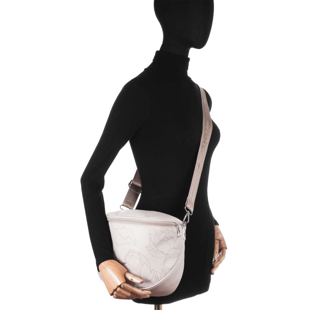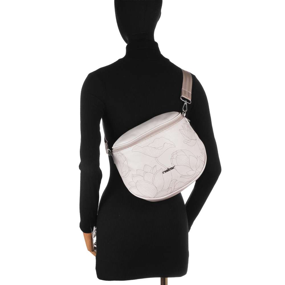 Ledvinka RIEKER je dokonalým důkazem toho, že i praktický doplněk může být výrazným módním kouskem. Ledvinka okouzlí jemným a harmonickým designem – béžový základ působí elegantně a univerzálně, zatímco květinový potisk mu dodává ženský šarm. Celkový vzhled podtrhuje stříbrné logo značky, které modelu přidává nádech originality. Kromě atraktivního designu vás nadchne také svojí funkčností. Hlavní prostor je uzavíratelný zipem, díky čemuž budou vaše věci bezpečně uloženy a vnitřní kapsa na drobnosti zajistí přehledné uspořádání drobností. Nastavitelný a odnímatelný popruh dekorovaný nápisem RIEKER umožňuje nosit ledvinku přesně podle vašeho stylu. Tato unikátní ledvinka je ideálním doplňkem pro každý den – do města, na procházky či výlety, když chcete mít volné ruce, vše důležité u sebe a zároveň vypadat stylově. Rozměry: cca V 23 cm x Š 26 cm x H 10 cm Vnitřní uspořádání: kabelka není dělená. Kabelka má délkově nastavitelný popruh, který lze odepnout. Maximální délka nastavitelného popruhu je cca 110 cm.