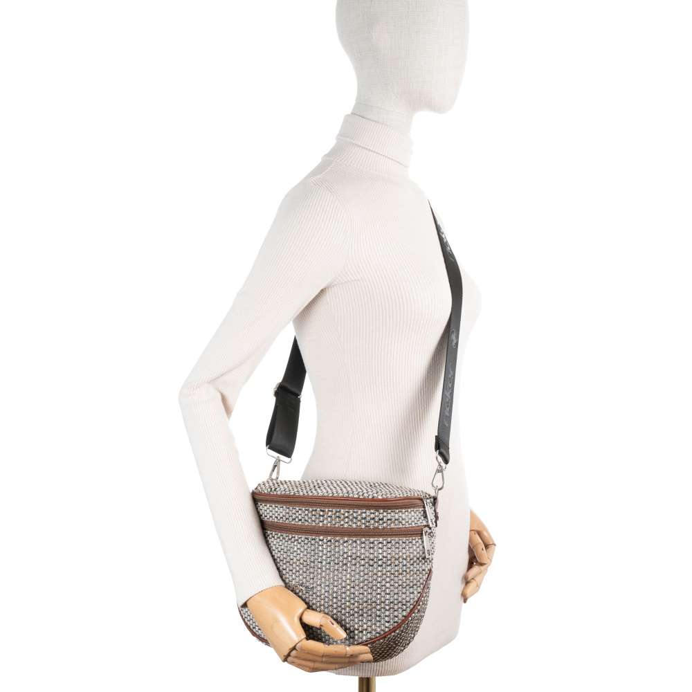 Tato ledvinka značky RIEKER je ukázkou dokonalé rovnováhy mezi módním vzhledem a praktickým využitím. Svršek je vyroben z textilního materiálu se strukturovaným povrchem, který působí originálně a poutavá barevná kombinace vynikne v každém outfitu. Decentní logo značky ve stříbrné barvě dodává celému designu sofistikovaný nádech a punc originality. Praktická stránka této ledvinky je řešena do detailu – zadní menší kapsička poskytuje bezpečné místo pro uložení drobností, které chcete mít hned po ruce. Dva přední zipy rozdělují tašku na menší prostor pro drobnosti a hlavní úložný prostor, který je navíc vybaven vnitřní kapsičkou pro lepší organizaci. Díky tomu budete mít vždy vše přehledně uspořádané. Komfort při nošení zajišťuje odepínatelný, délkově nastavitelný popruh, který umožňuje nošení více způsoby. Tato variabilita z ní činí všestranný doplněk vhodný do města, na cestování či volnočasové aktivity. Ledvinka RIEKER není jen obyčejnou taškou – je módním detailem, který podtrhne vaši osobnost, dodá outfitu moderní akcent a zároveň vám poskytne funkční řešení pro každý den. Rozměry: cca V 23 cm x Š 26 cm x H 10 cm Vnitřní uspořádání: kabelka není dělená. Kabelka má délkově nastavitelný popruh, který lze odepnout. Maximální délka nastavitelného popruhu je cca 105 cm.
