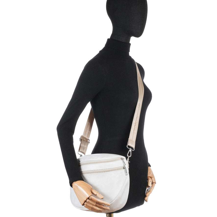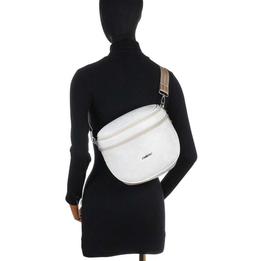 Nechte se okouzlit ledvinkou značky Rieker, která dokonale vystihuje spojení moderního stylu a praktičnosti. Jemné linie na světlém svršku spolu se stříbrným logem značky vytvářejí harmonický vzhled, který působí nenápadně, ale zároveň velmi stylově. Promyšlené uspořádání prostoru zajišťuje praktičnost při každodenním používání. Zadní menší kapsička nabízí bezpečné místo pro uložení drobností, které chcete mít vždy po ruce. Přední část je vybavena dvěma zipy – jeden ukrývá menší prostor pro drobnosti a druhý otevírá hlavní úložný prostor s vnitřní kapsičkou, díky čemuž budou vaše věci přehledně uspořádány. Odepínatelný a délkově nastavitelný popruh umožňuje přizpůsobit způsob nošení přesně podle vašich potřeb, přes rameno nebo křížem přes tělo. Tato ledvinka RIEKER se stane praktickým a módním společníkem při procházkách městem, cestování i během volnočasových aktivit.