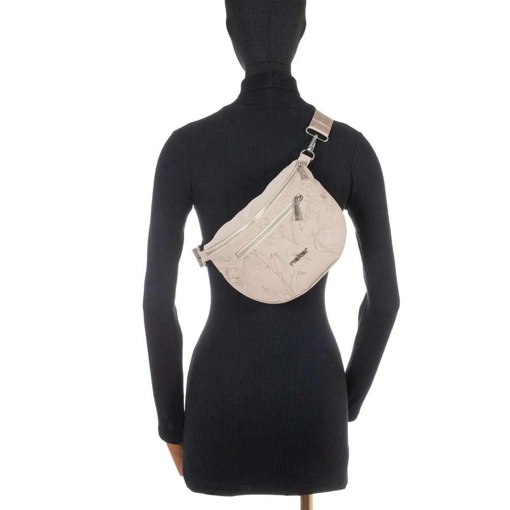 Dopřejte si stylový detail, který rozzáří každý váš den. Ledvinka RIEKER v jemném béžovém odstínu s romantickým potiskem tulipánů působí něžně, ale zároveň výrazně – přesně tak, abyste se cítili výjimečně při každém kroku. Stříbrné logo značky dodává celku elegantní lesk a podtrhuje její jedinečný charakter. Promyšlené zpracování vám usnadní každý den. Přední kapsa na zip je připravena na drobnosti, které chcete mít vždy rychle po ruce, zatímco hlavní prostor s menší vnitřní kapsou poskytne přehledné a bezpečné úložiště vašich věcí. Díky odepínatelnému a nastavitelnému popruhu si ji můžete přizpůsobit přesně podle sebe – nosit ji pohodlně přes rameno nebo stylově crossbody. Ledvinka RIEKER je ideálním doplňkem každého dne – spolehlivě vás doprovází městem, při volných chvílích i v momentech, kdy chcete svůj styl jemně pozvednout originalitou.